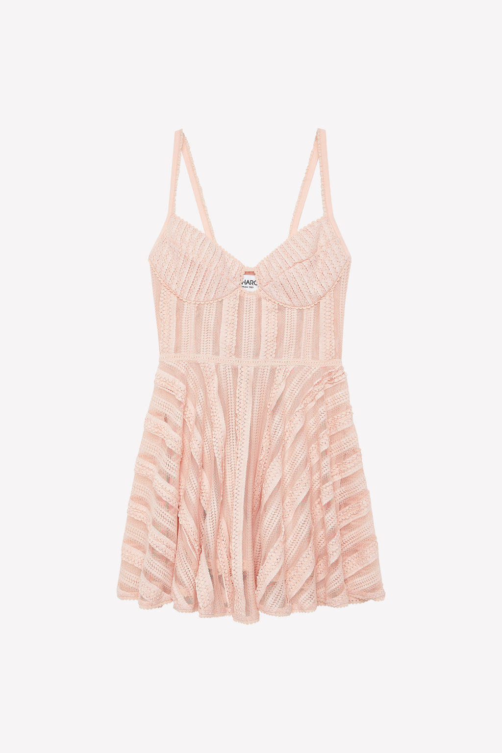 Confeccionado en mesh de algodón y delicado encaje, este diseño combina tirantes finos que enmarcan el escote. Su estética fresca y sofisticada encarna la esencia del verano y el inconfundible sello de la firma ibicenca: elegancia, ligereza y libertad.