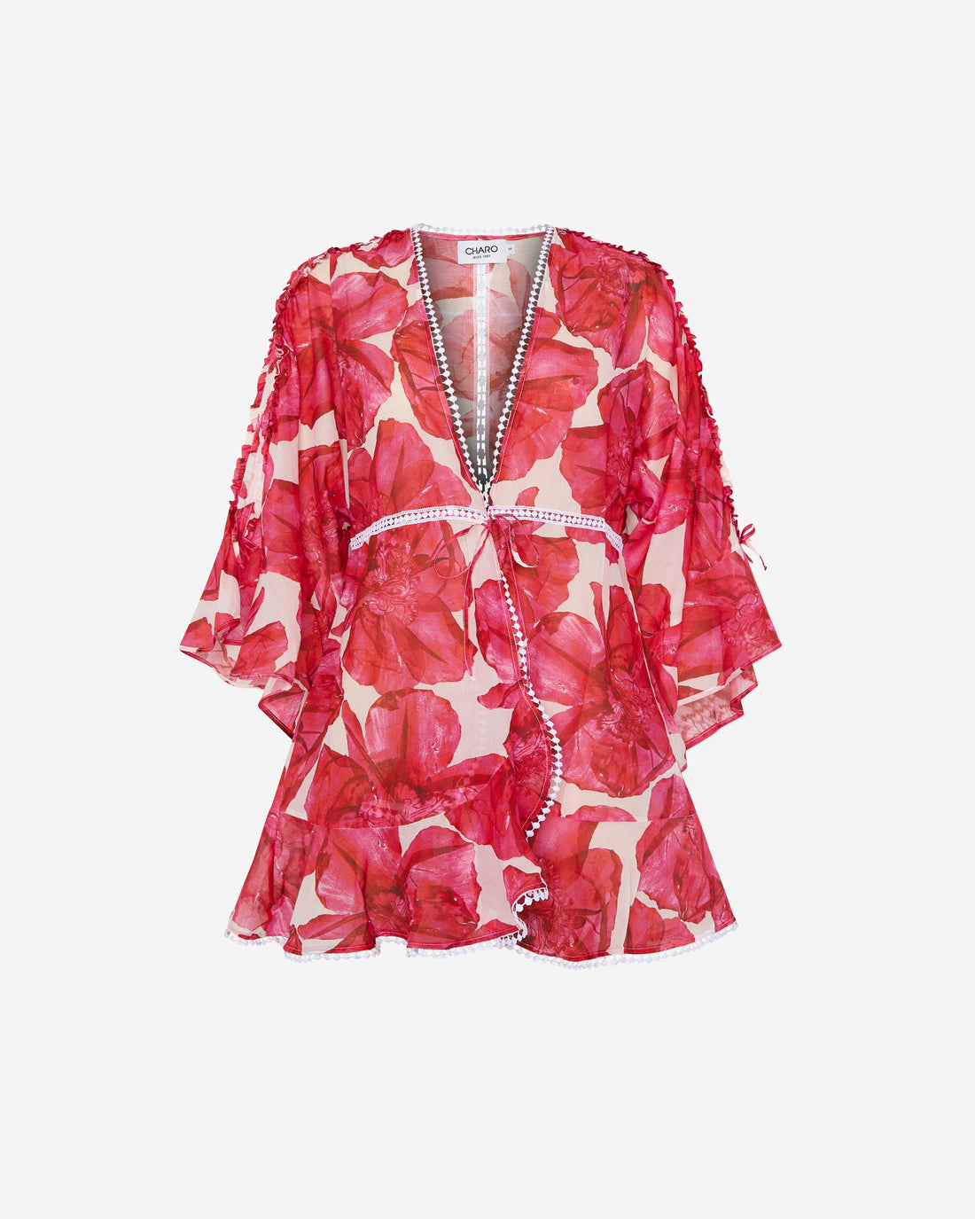 La blusa DONNELIE es la cúspide del espíritu ibicenco en una prenda. Su fresco voile...