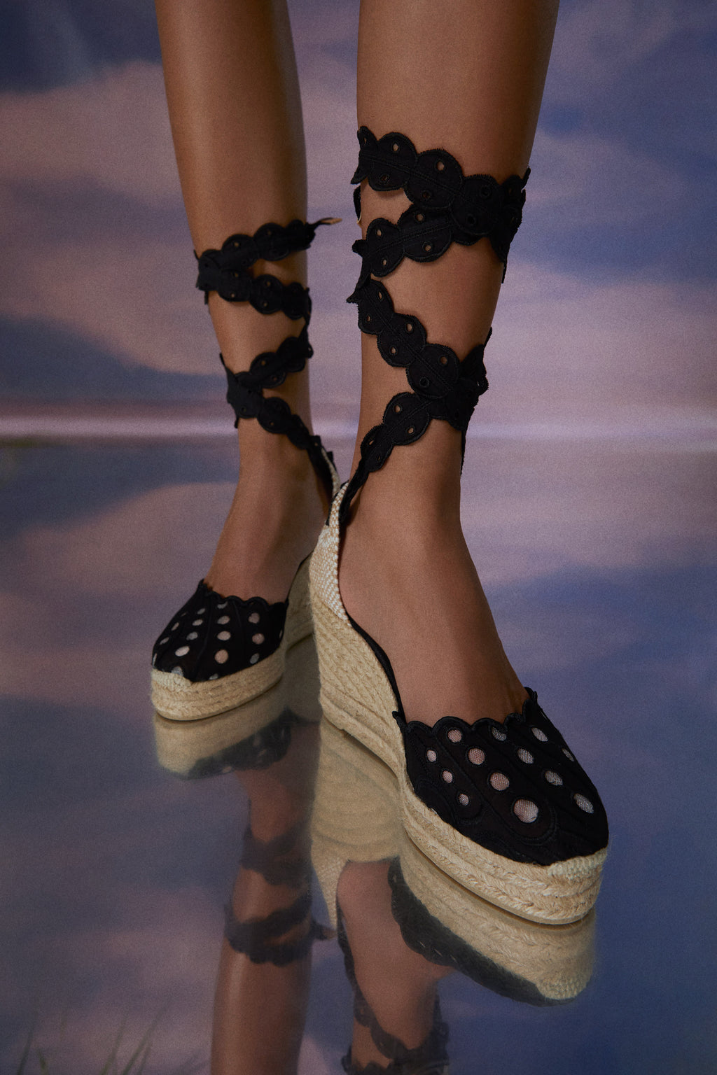 Enjoy exclusively this beautiful collaboration between Castañer and Charo Ruiz. Made in Spain, these espadrilles are made of embroidered cotton with canvas panels and rest on wedges of traditionally woven jute. Wear them to special occasions in your summer and make it iconic.