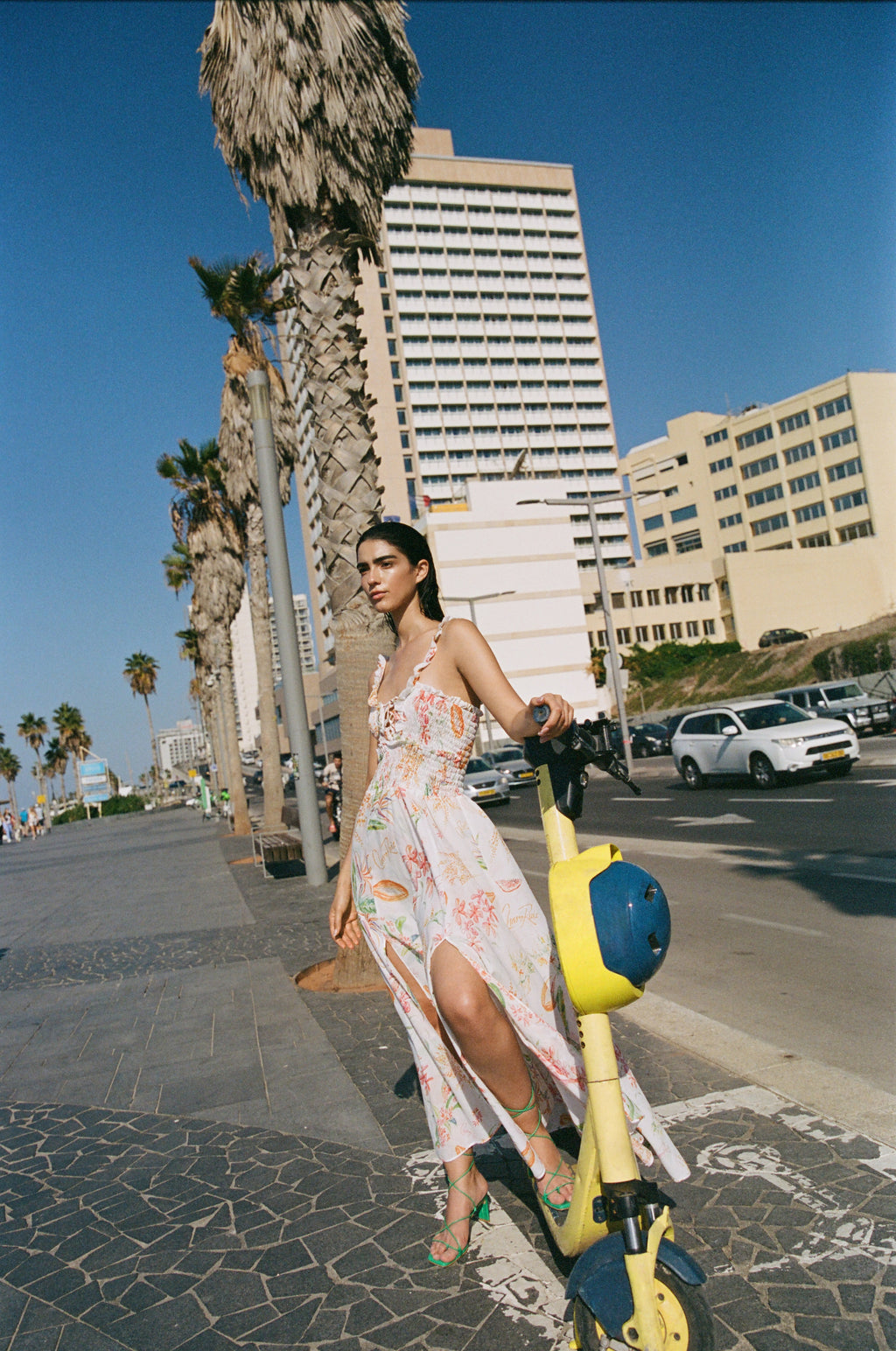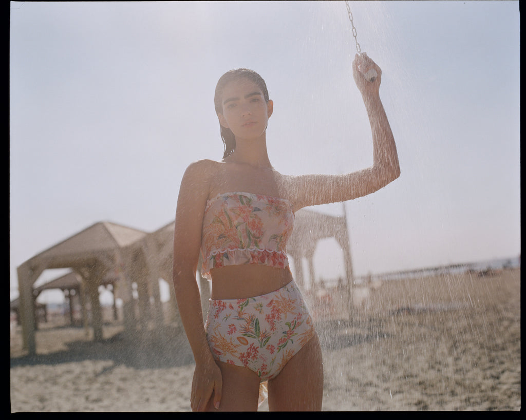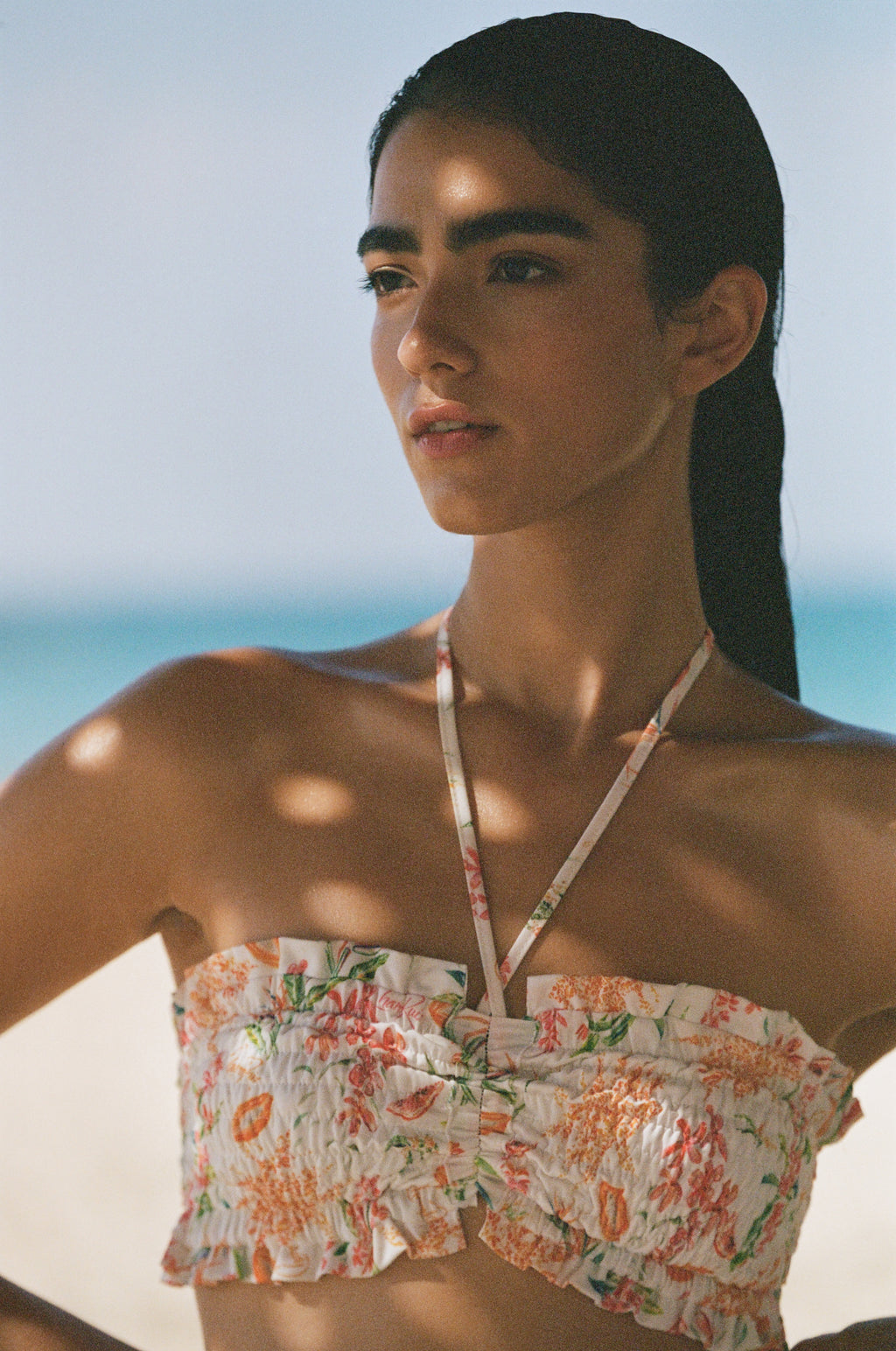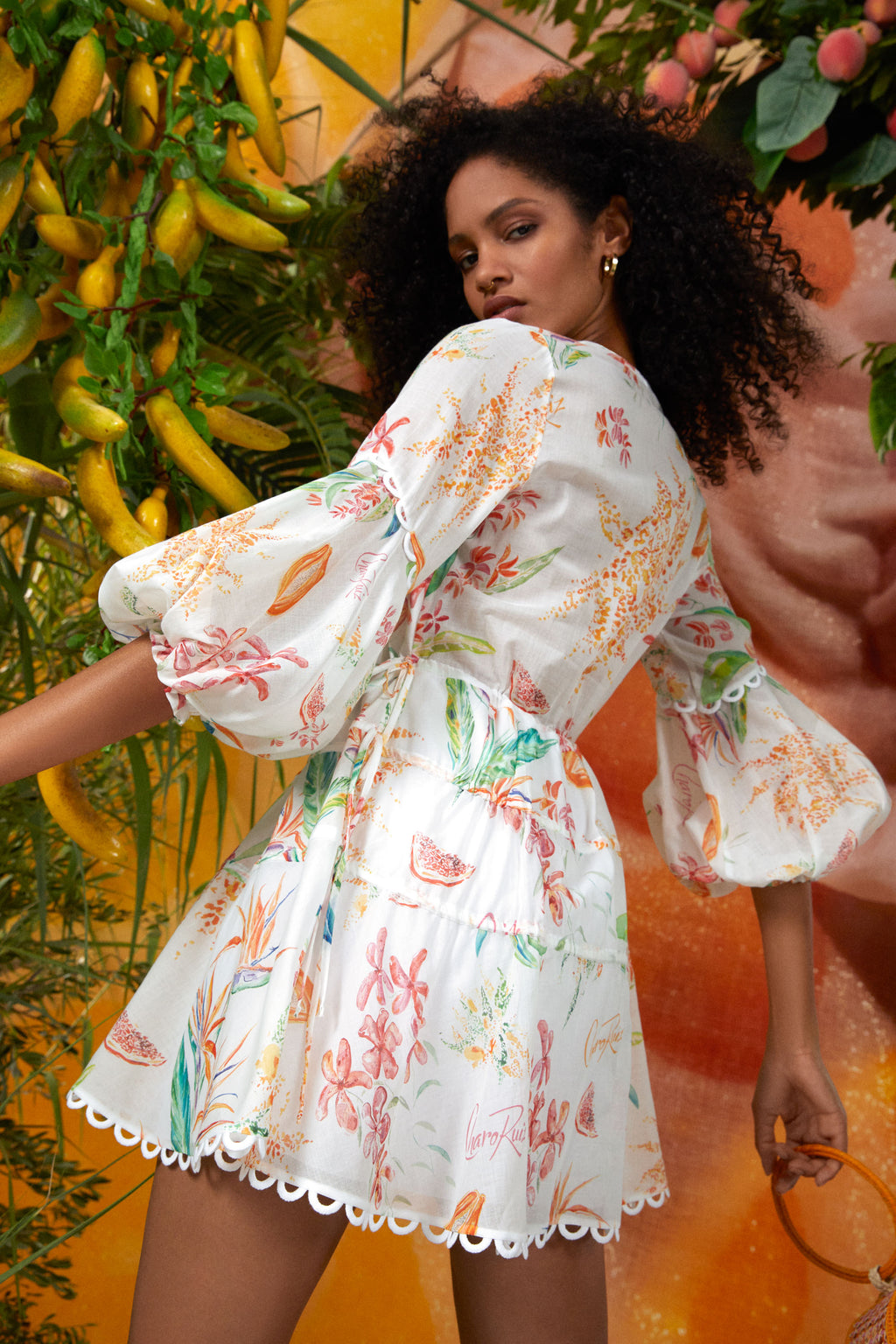 A La Fresca defines the celebration of a moment of taste and joy. The scents, flavours and textures of summer are represented in a print signed by Charo herself and surrounded by symbols of harmony and beauty; orchids, birds of paradise, mimosas, papayas and petals dedicated to all women who understand the divine sense of freedom.