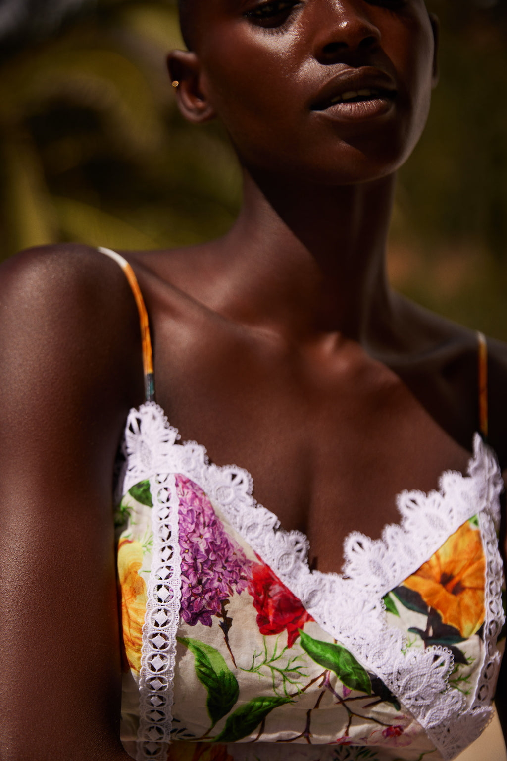 The delicious, vibrant maxi floral print adds a splash of vitality to this collection, creating movement and a sense of fluidity to the fabric whilst the rich, exotic inspired tones transform each individual piece into its very own timeless masterpiece.