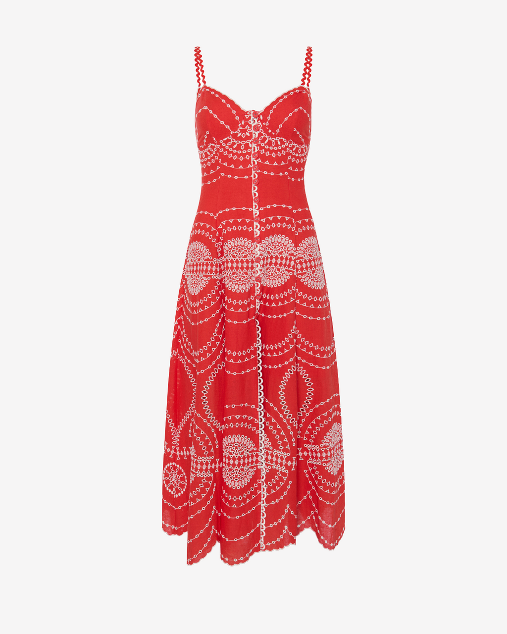 The new embroidered linen and cotton combinations are here to stay. The proposed placement of this collection represents the perfect execution of the standards of quality and vision of the physical and emotional body of the Charo Ruiz woman. The exclusive elegance in the application of rounder shapes that run along the female morphology as an ornament commits this collection to become iconic for the season.
