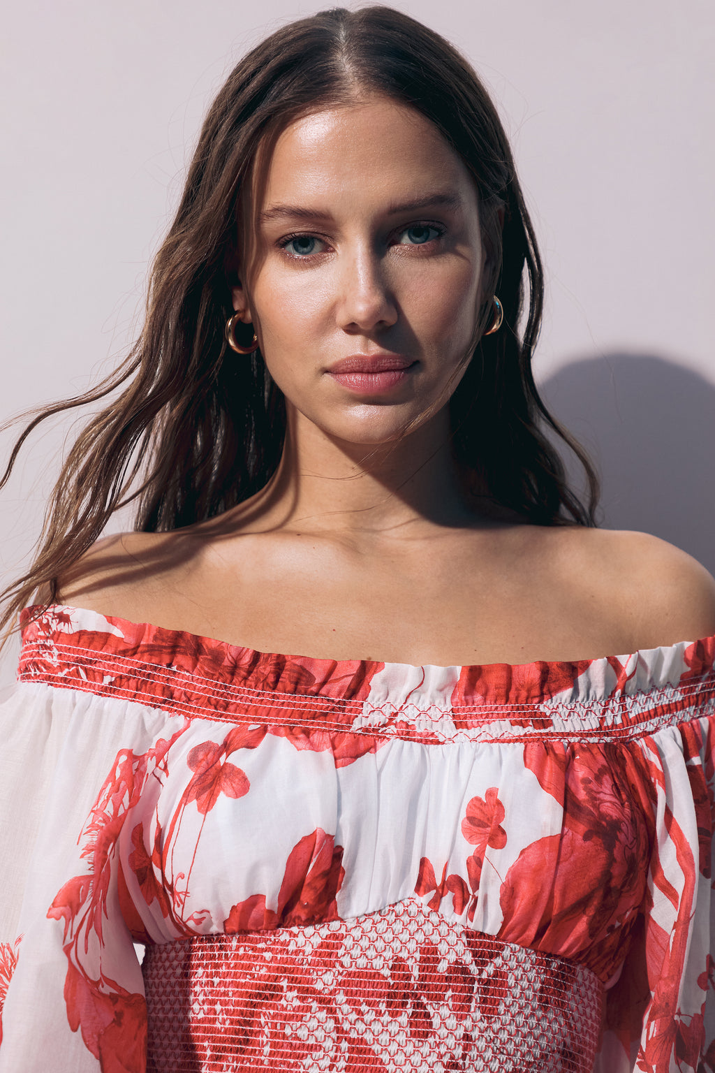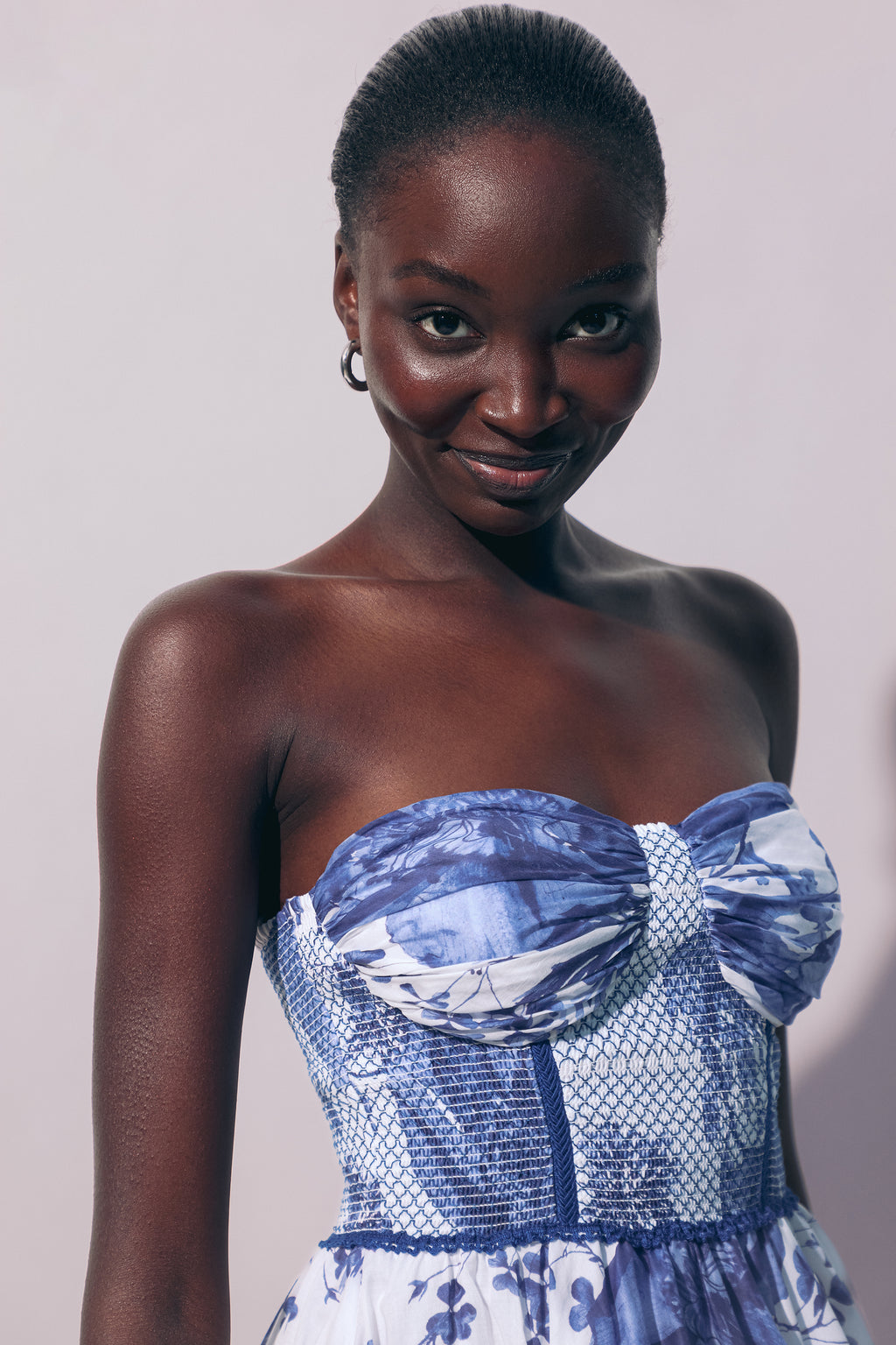 Dive into our new Wet Coast collection. Its print, with hand-painted motifs, is inspired by the photographic technique of cyanotype, which combines the power of the sun with the delicate finish of water to create elevated images. This drop brings this art form, so in line with our principles, into fashion through exquisite 100% cotton pieces.