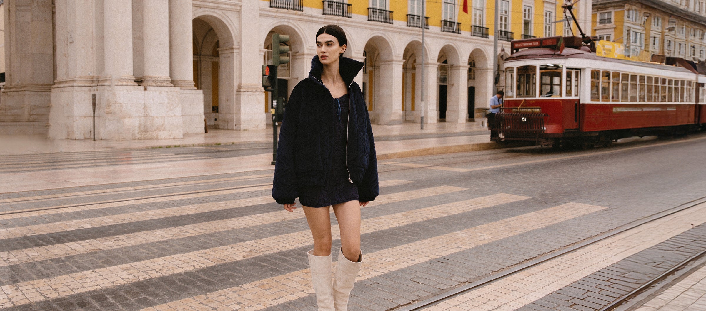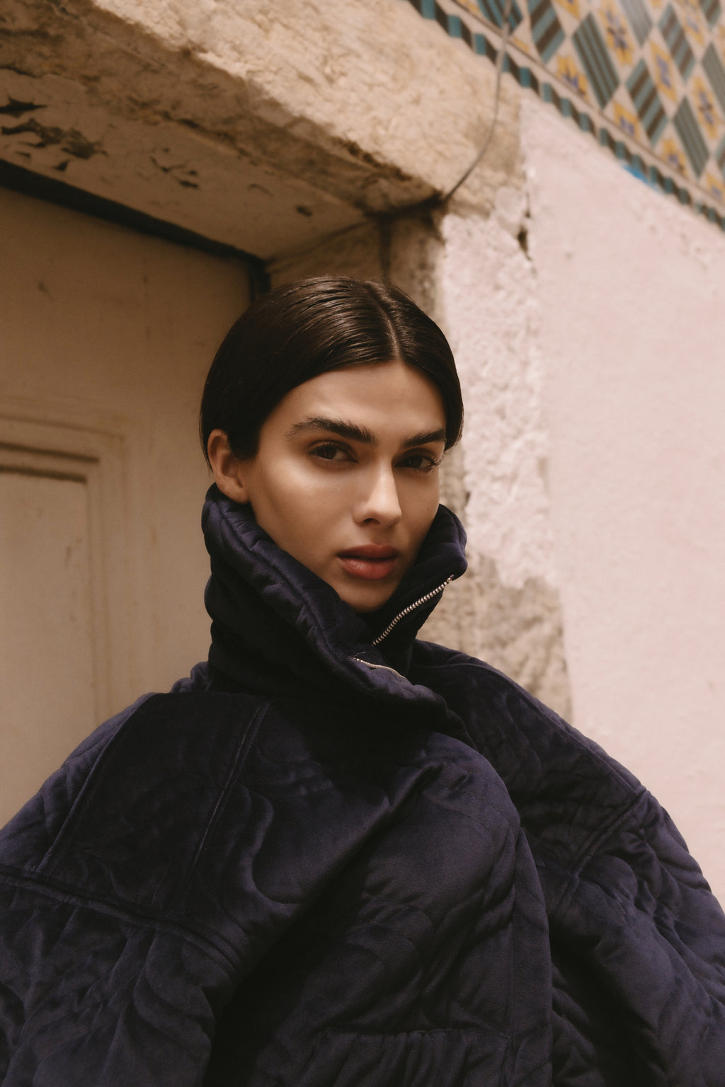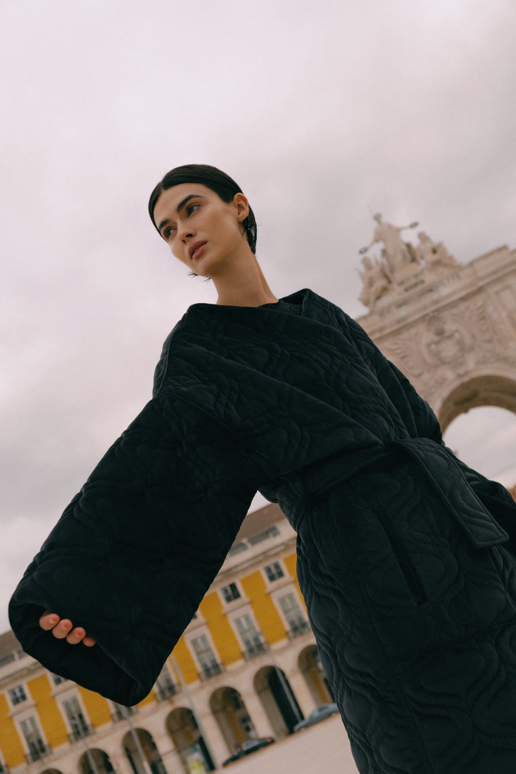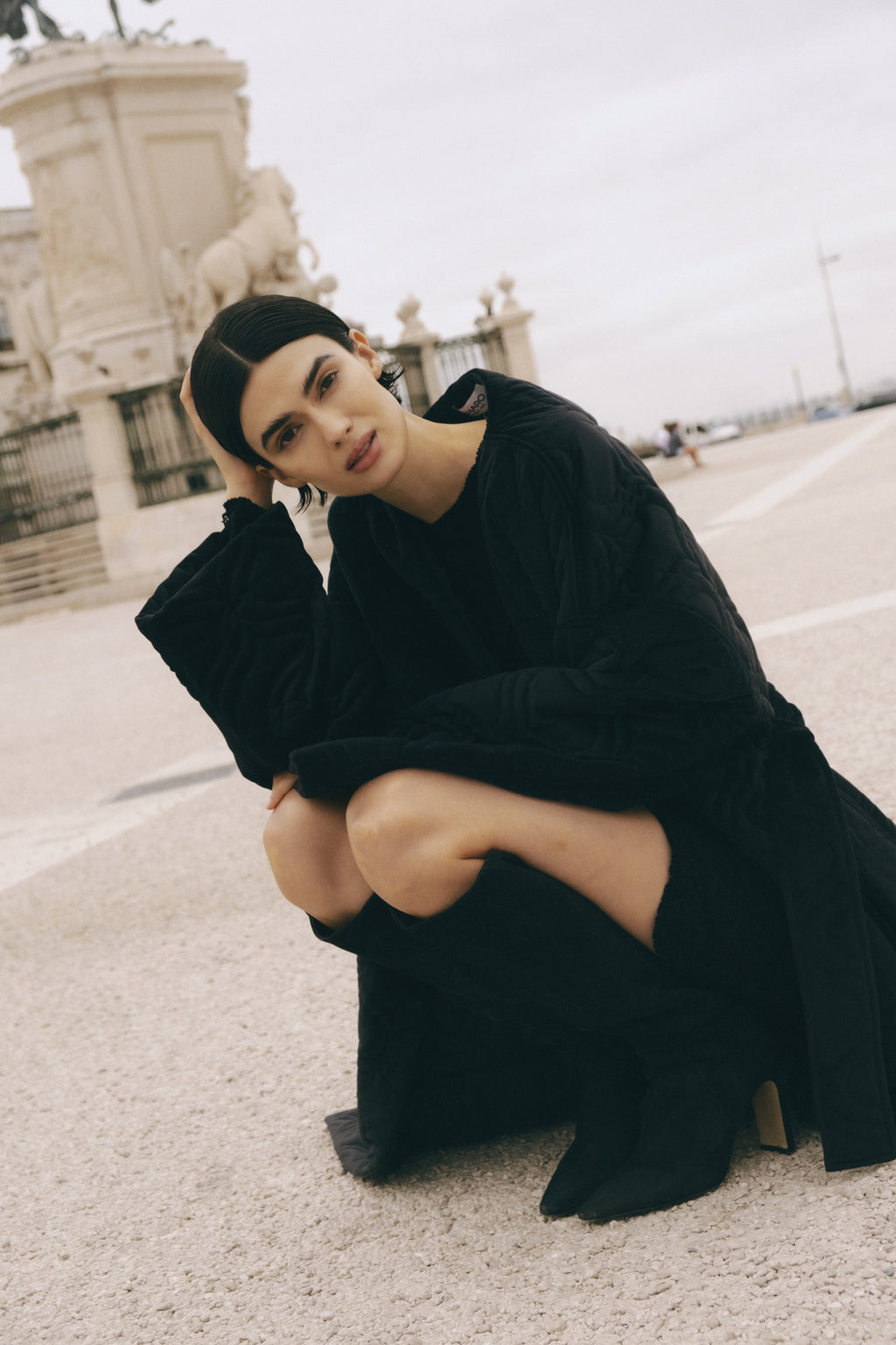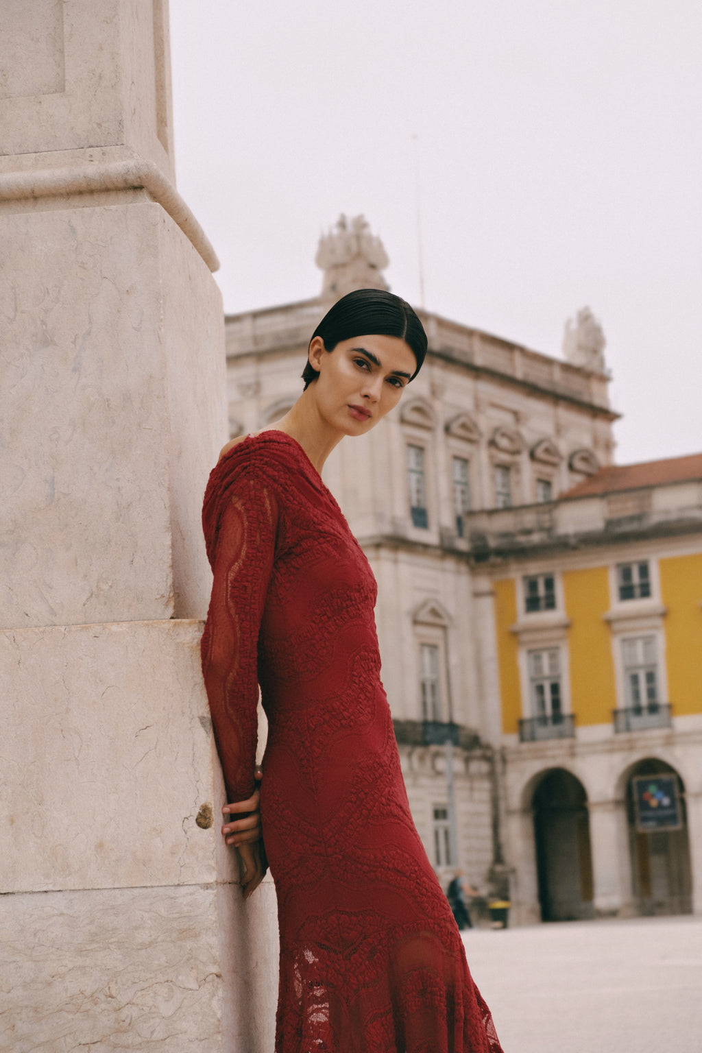 Born from the movement of the ocean waves: undulating textures, sheer effects, and a palette that dives into the mystery of the seabed. Crafted in mesh with a wave-shaped pattern, the collection sculpts form-fitting volumes that embrace the body and offers skirts with graceful drape and movement.
