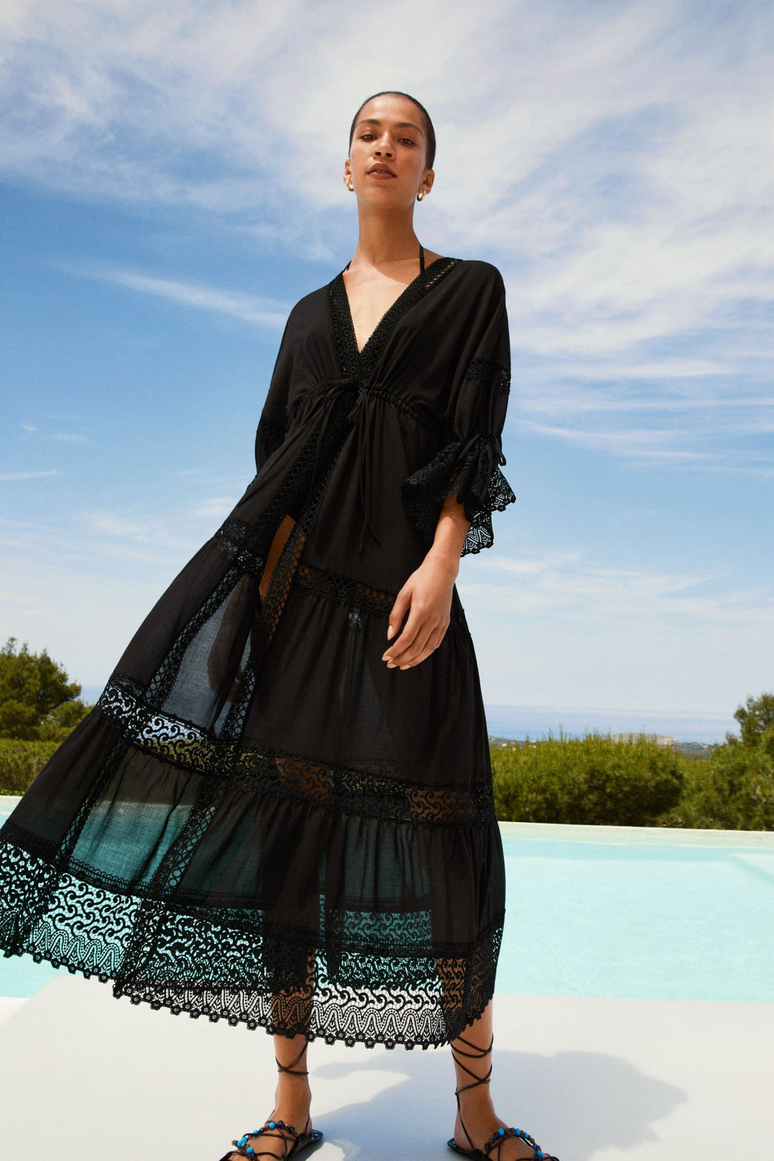 Rock Ali with a backless bathingsuit or bikini to emphasise the guipure back panels; Summer...