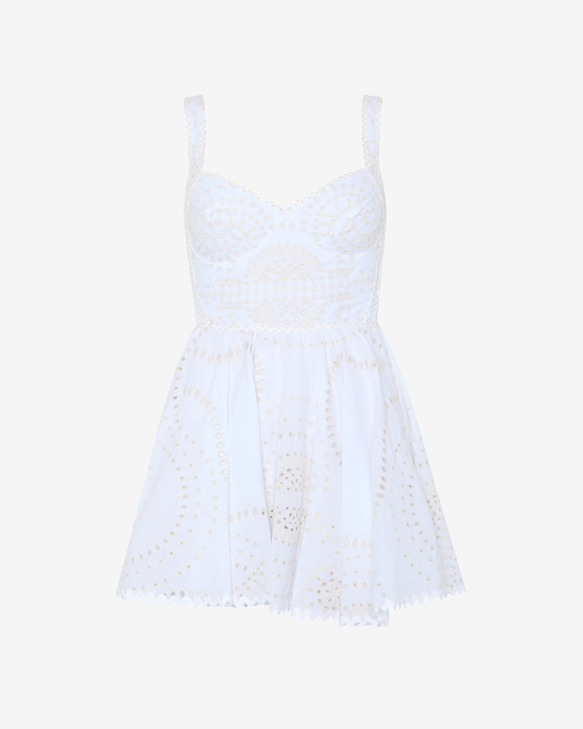 The WINNIE mini dress, in embroidered linen-cotton blend, is a feminine and youthful creation perfect...