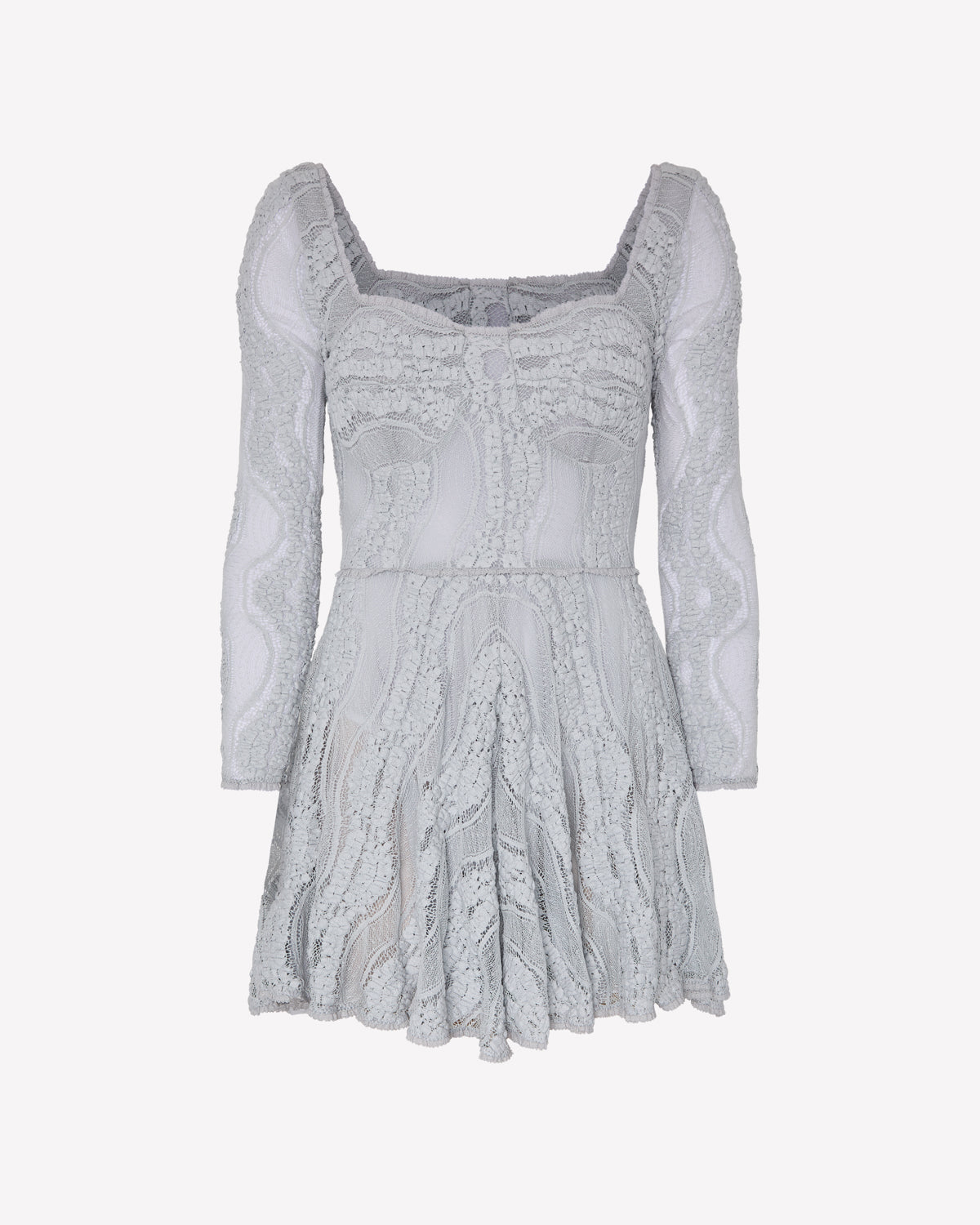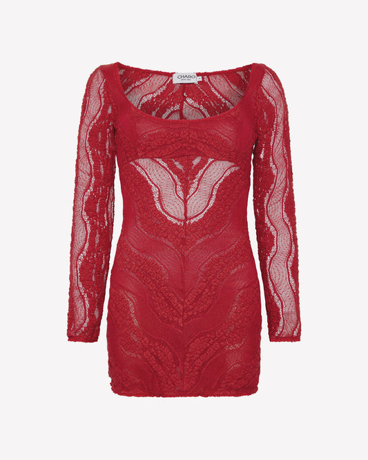 Our THONE mini dress, made with delicate lace, features a skater cut that highlights the...