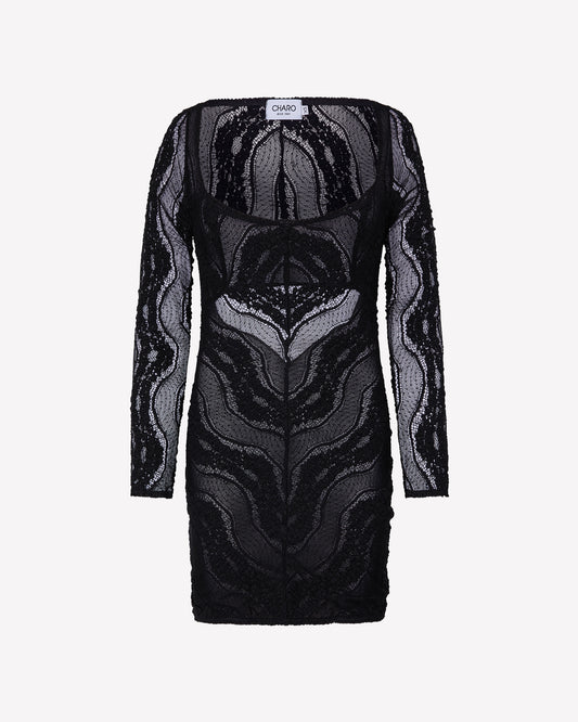 Elevate your elegance with the PEARL dress — a fitted mini silhouette crafted in wave-textured...
