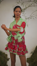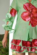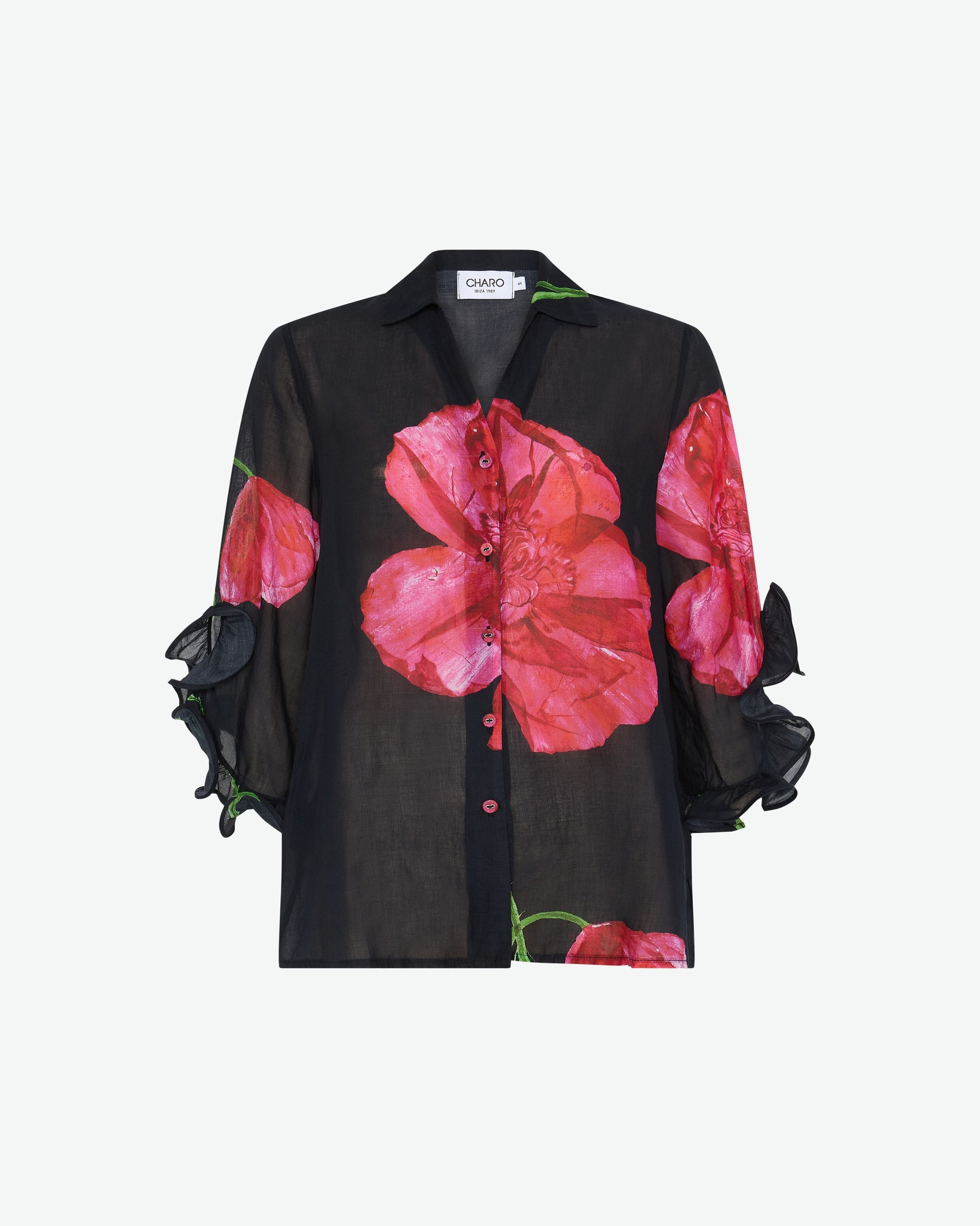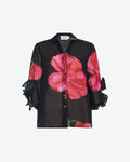 The ALEX blouse in cotton voile is an elegant and fresh piece perfect for this summer season. Its graphic floral watercolor print creates a delicate look complete with an Iitalian -type neckline and ruffled sleeves that fall femininely along your arm.