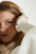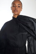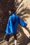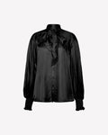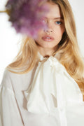 Immerse yourself in luxury and sophistication with our BOMMIE shirt. Crafted in a silk-cotton blend and handcrafted finishes, this piece is a statement of timeless elegance and style. Its flattering lines, feminine neck bow, and XL sleeves make it a must-have piece that elevates your looks for any occasion.