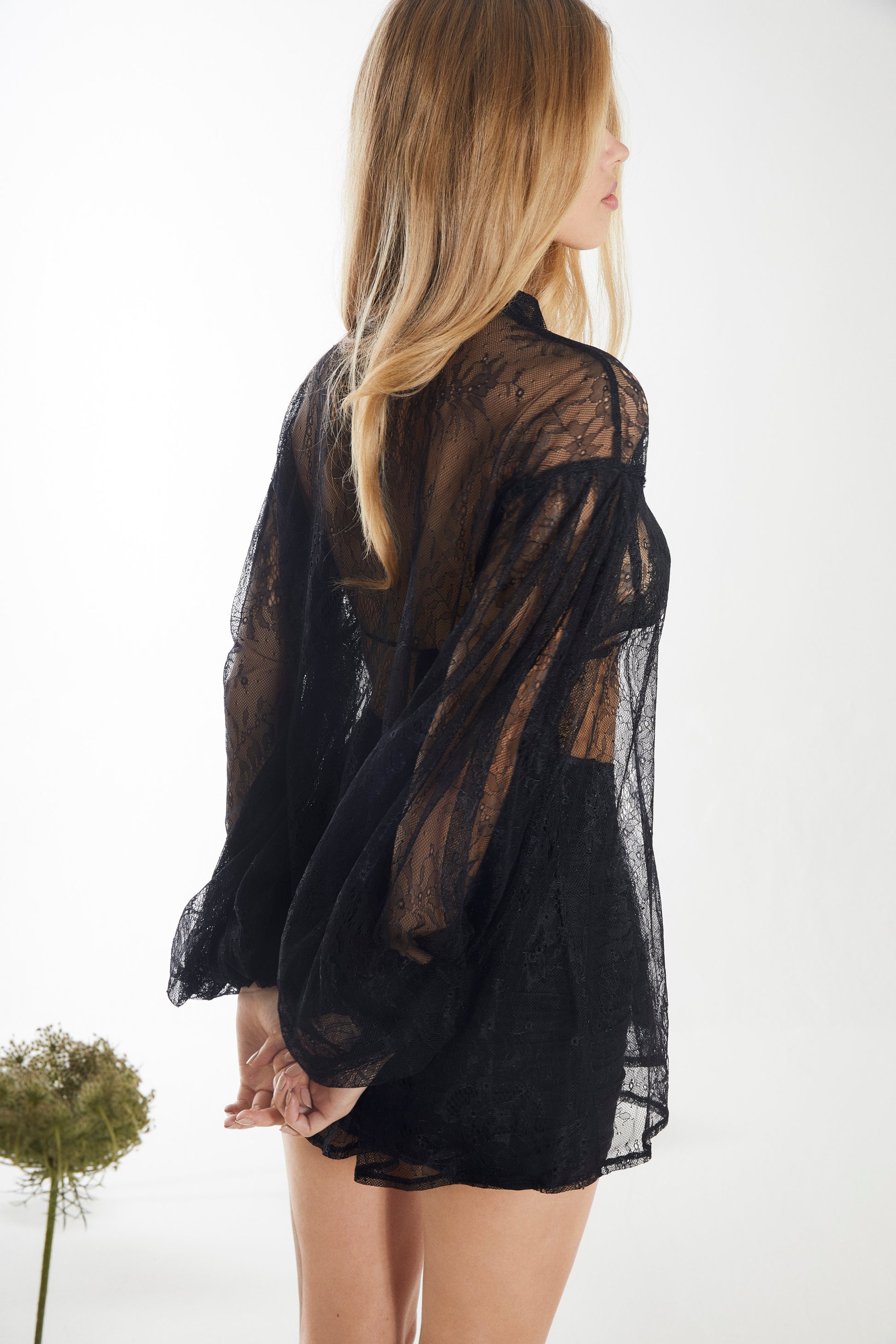 Feel beautiful in our CARALLE shirt. This garment exudes sophistication and femininity, fusing the delicacy of lace with contemporary lines to create a timeless and modern piece. The piece exudes an air of romance and refinement, with its intricate pattern adding texture and its collar and button placket finishes adding elegance.