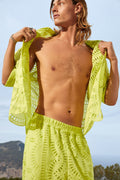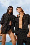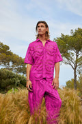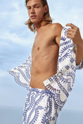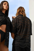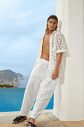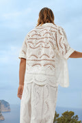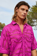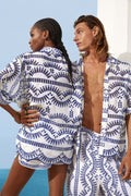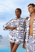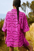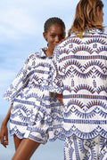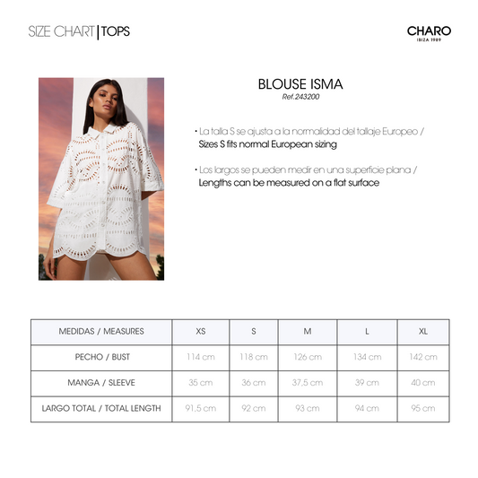 Our Isma blouse is a summertime classic thanks to its androgynous silhouette and comfort. Its extra large sleeves and scallop finishes on the lower part of the garment compliment the clean lines of the shirt-like collar. The delicate embroidered texture adds sophistication to ur oversize design.