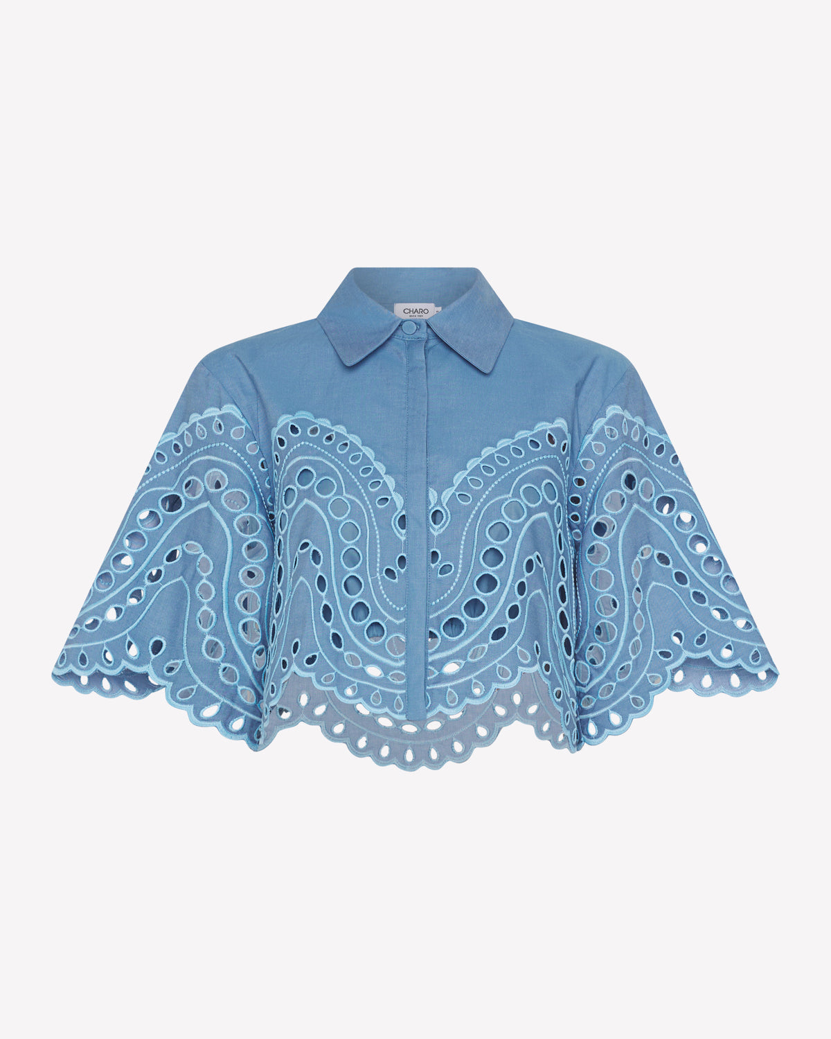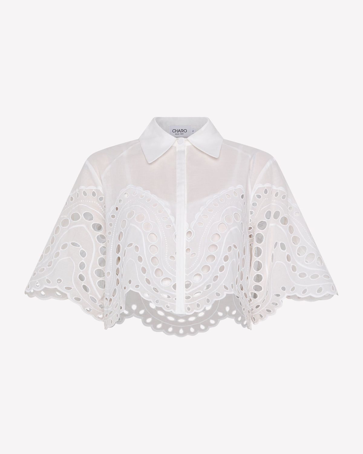 The STORM blouse is a design with a bold spirit. Crafted from embroidered cotton, it features a boxy cut and slightly cropped length that bring a sense of lightness and ease to any look.