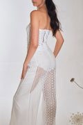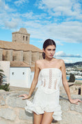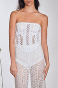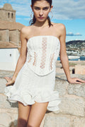 Dazzle with elegance in our exquisite LATHIE guipure bustier. This sophisticated design combines flattering vertical lines with the femininity of a strapless neckline, creating a unique piece that will make you feel beautiful all season long.