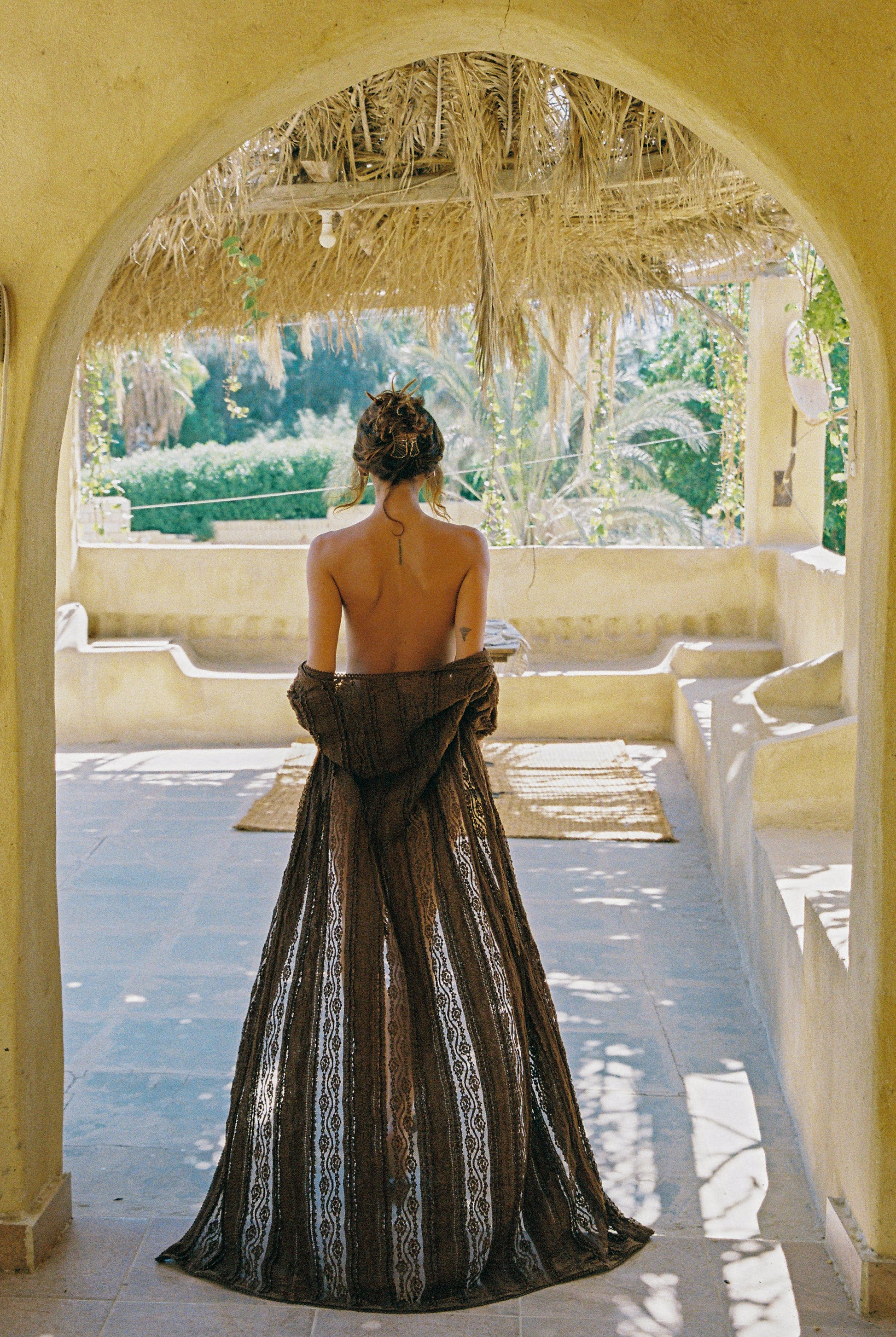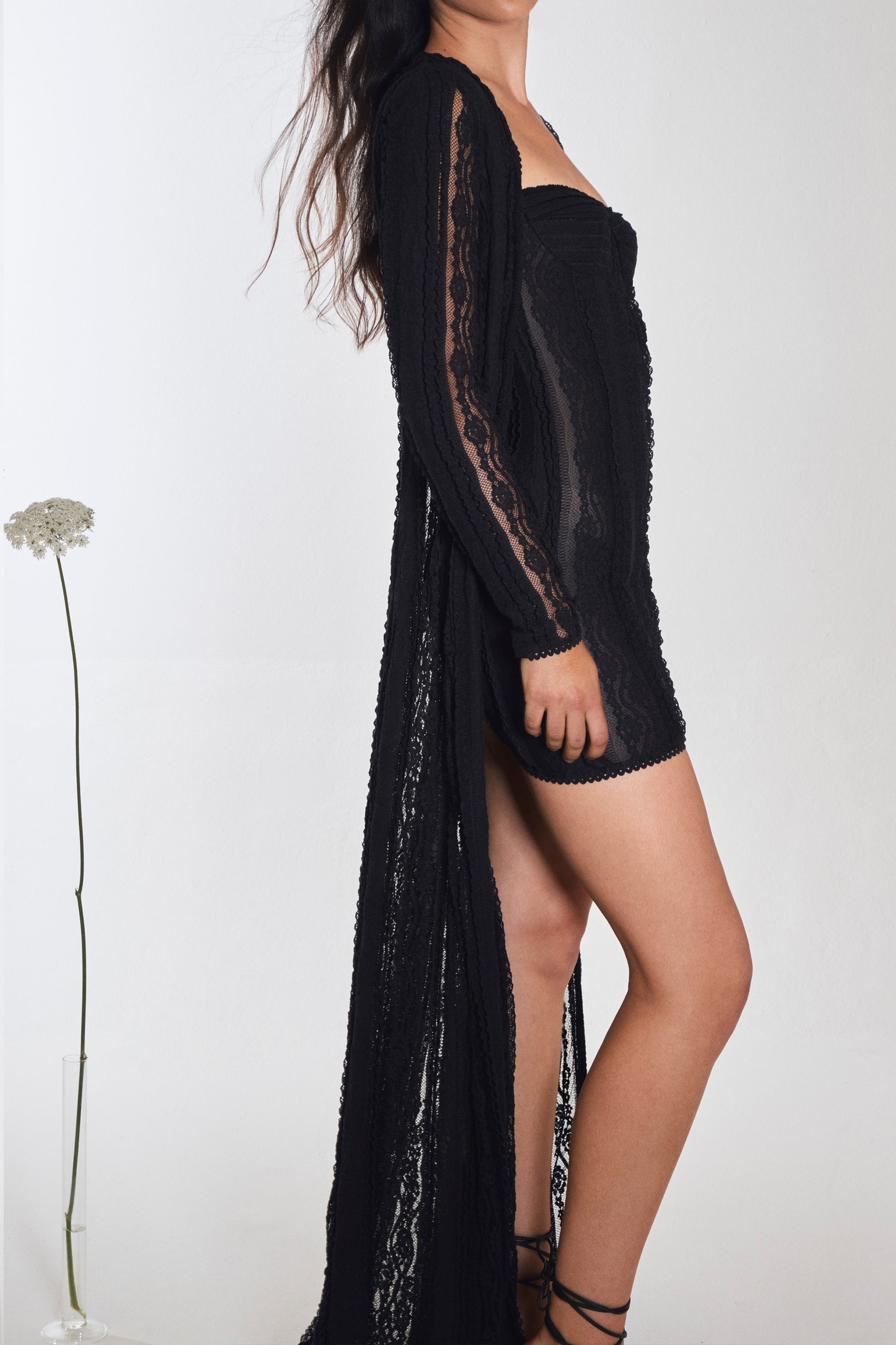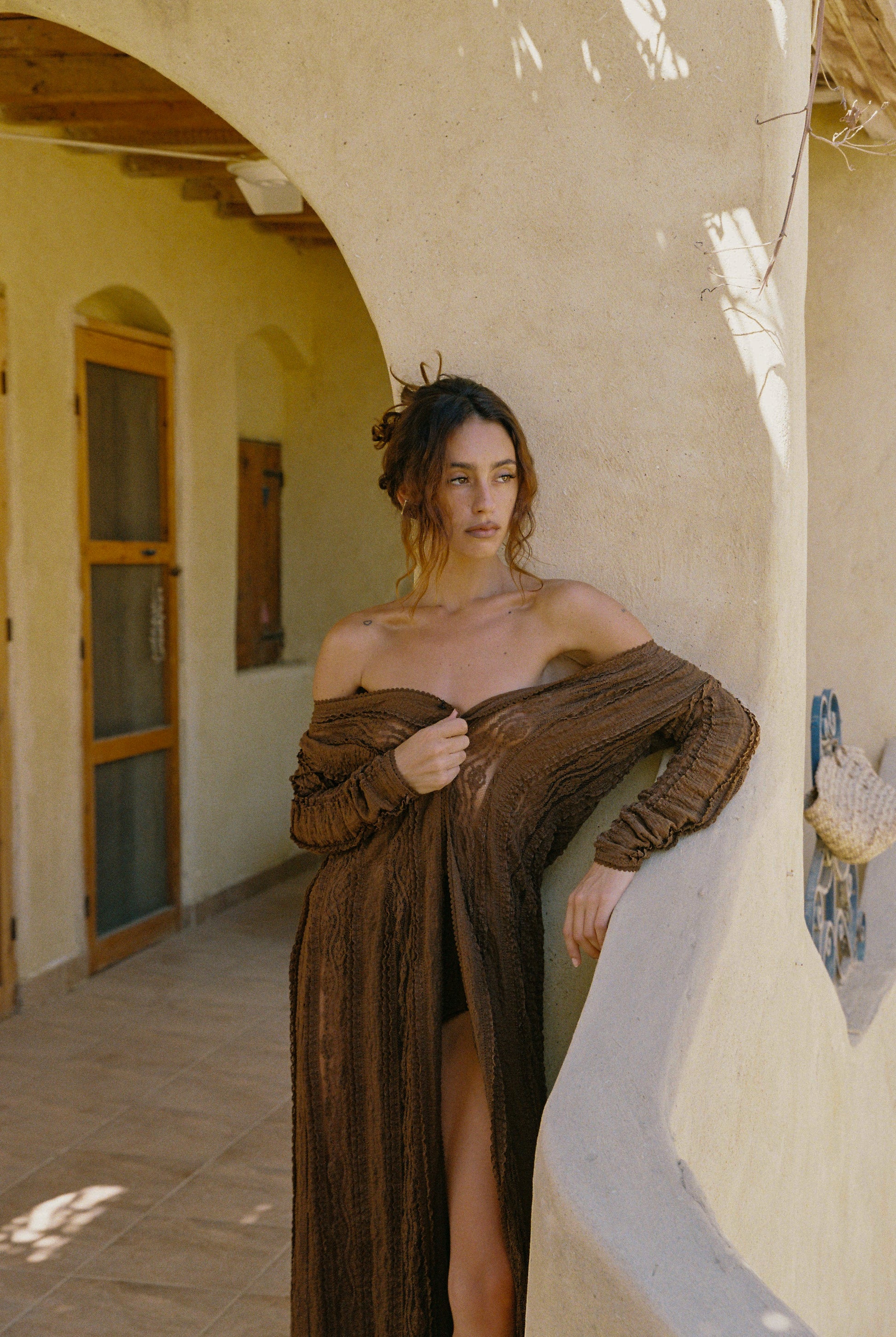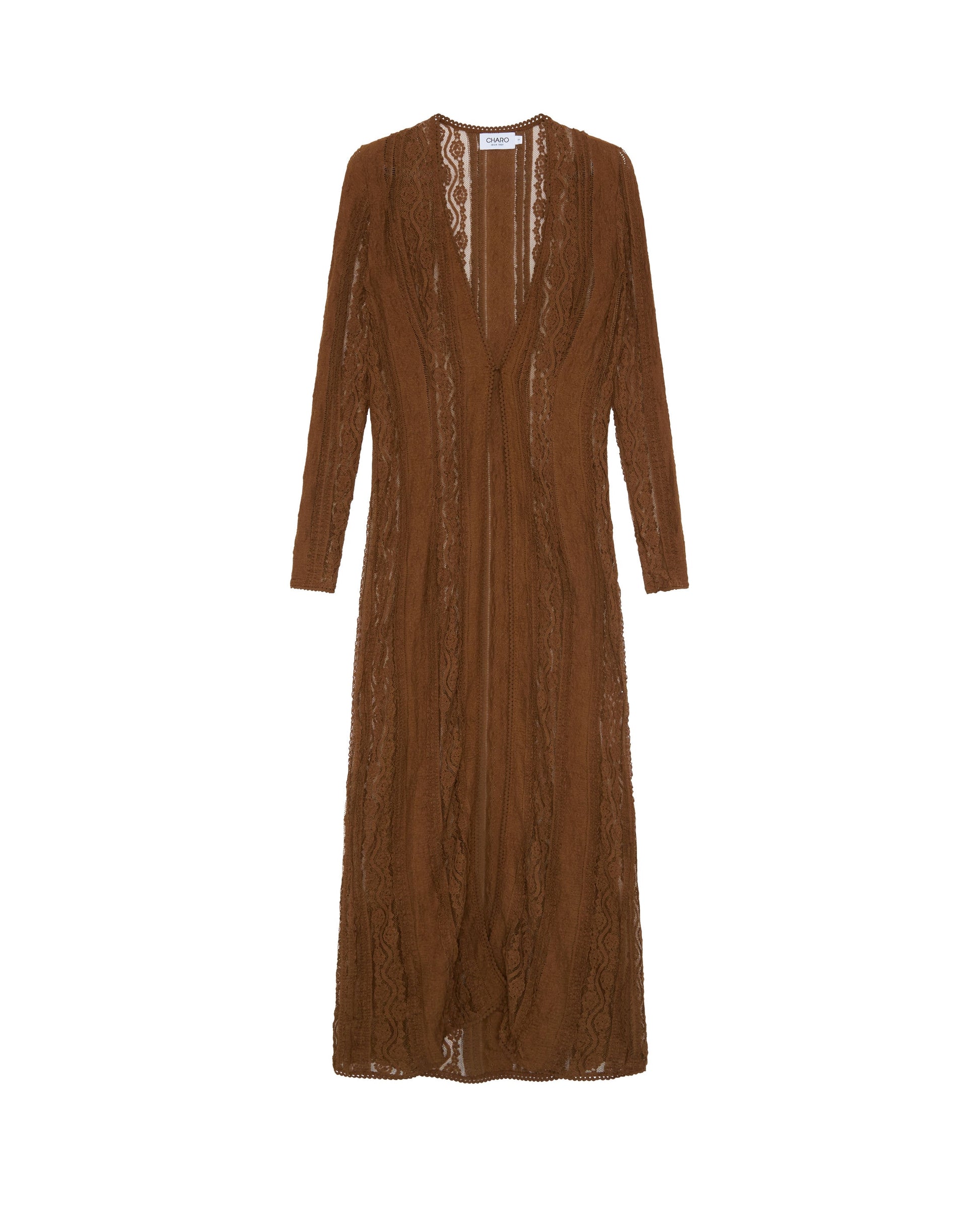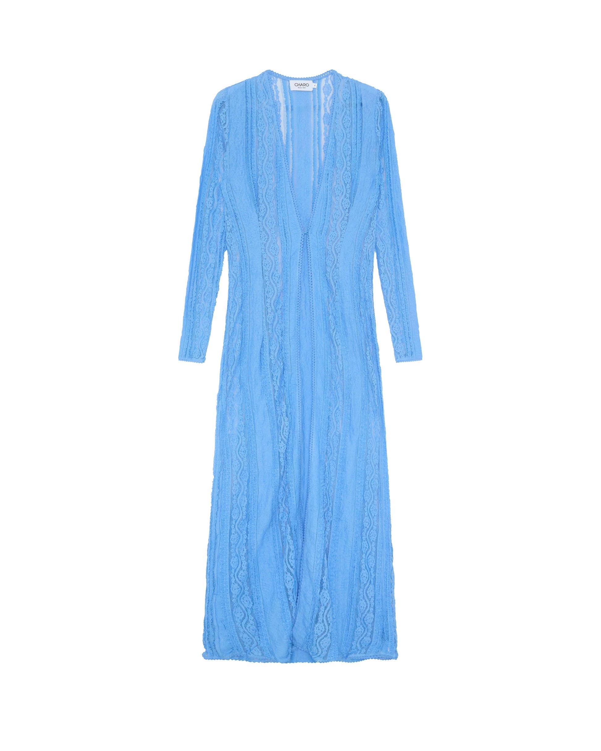 Our INAR jacket brings timeless elegance to your looks with its play of sheerness levels. Its cotton mesh fabric adorns the entire creation, from its v-neckline and slightly flared sleeves to its lower part. Pair it with your swimwear to create perfect looks, or throw it on with other outfits from the collection for a gorgeous evening look.