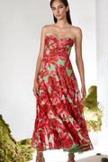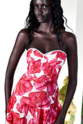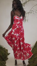 The silhouette of our AMBAR maxi dress is a must-have in your closet. Feel beautiful thanks to its delicate cotton voile fabric printed with watercolor flowers. The sweetheart neckline finished in lace flatters your curves and the paneled skirt brings romantic movement to your walk.
