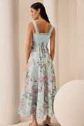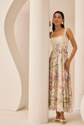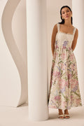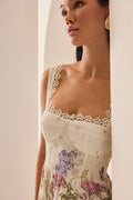 Fall in love with the CRISSY dress, a piece that blends freshness and elegance in a timelessly feminine design. Crafted in printed cotton fabric, it features a fitted bodice with thin straps that flatter the silhouette and enhance the figure. Front slits on the skirt add lightness and movement, while delicate details reinforce its sophisticated allure. Perfect for sunny days or special summer occasions.