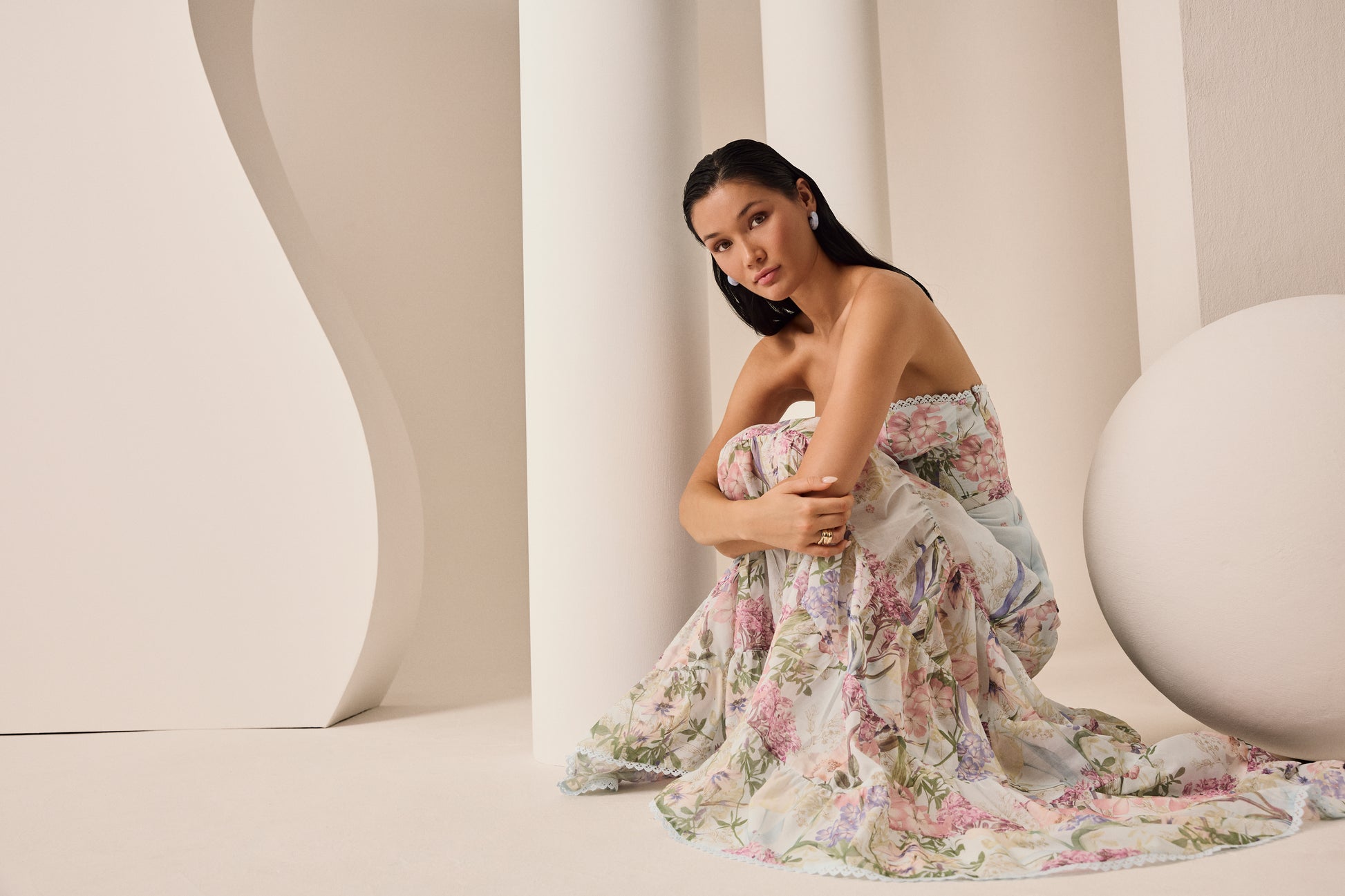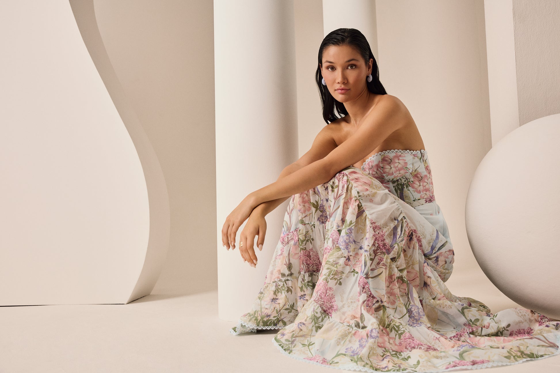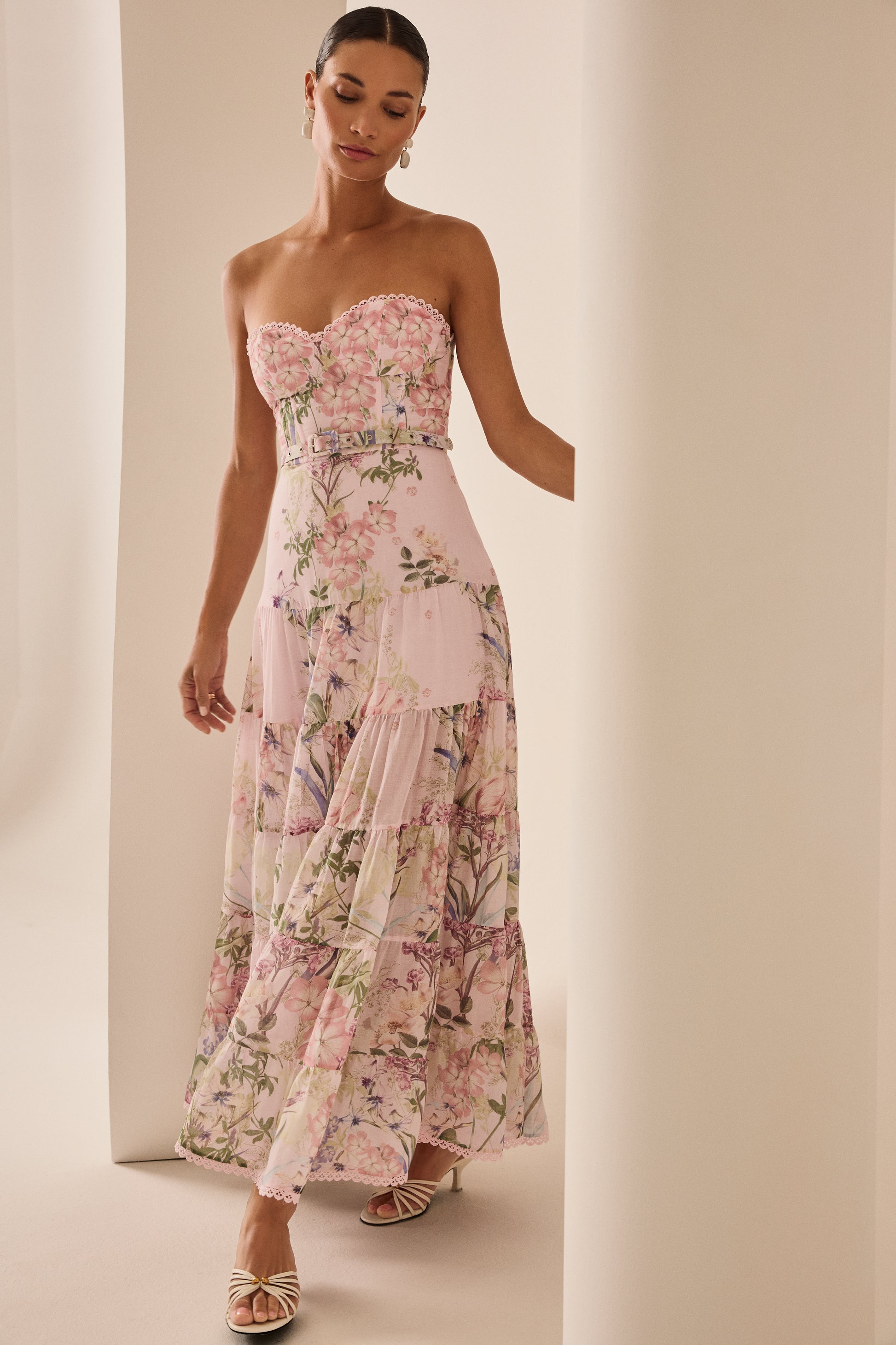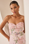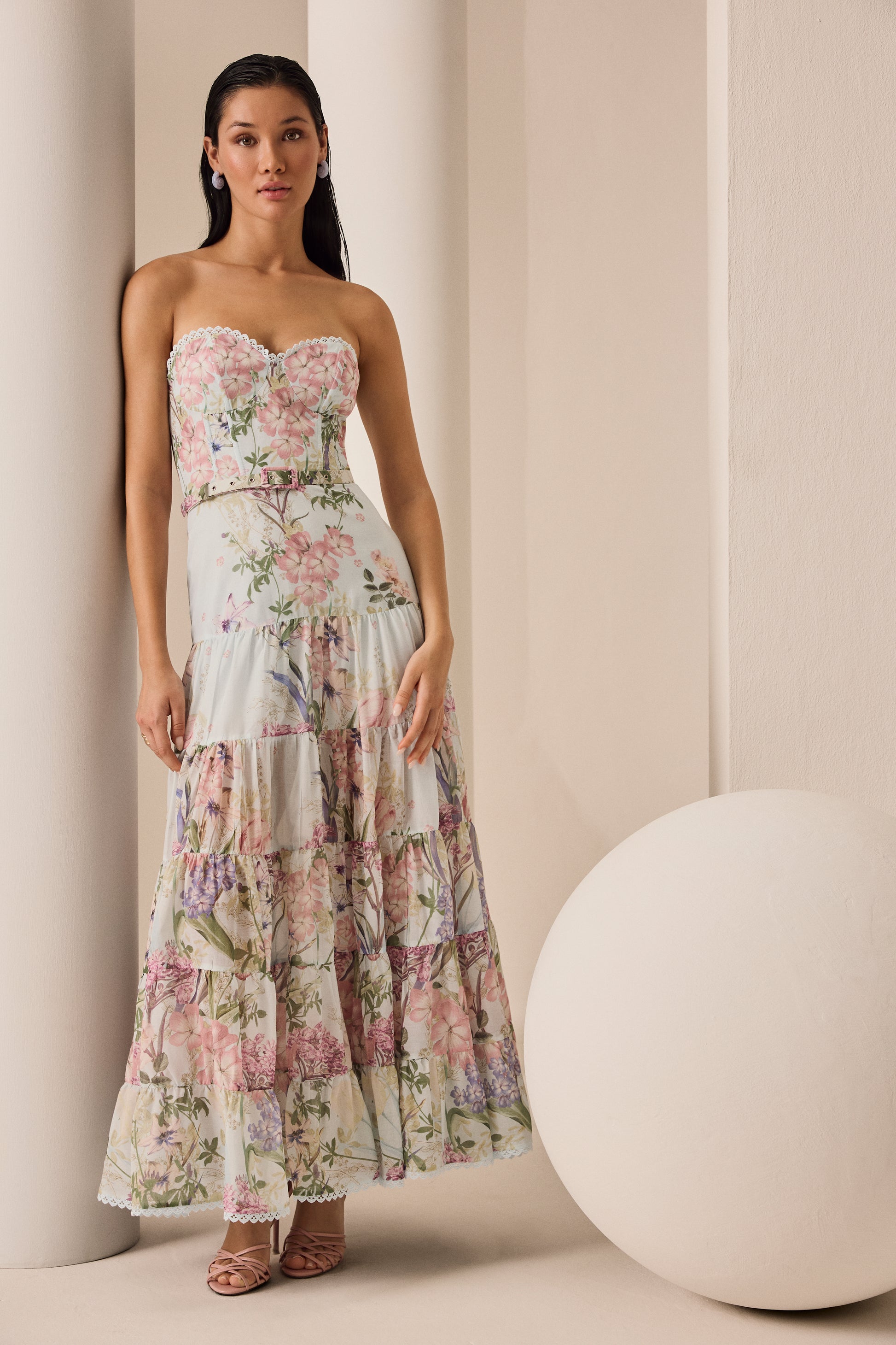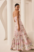 Explore the elegance of the DANNY maxi dress, a piece that combines romance and sophistication in every detail. Crafted from floral-print cotton, its structured bodice with a sweetheart neckline gently enhances the silhouette. The flowing skirt with ruffles adds movement and an ethereal touch, creating a feminine and elongated shape. Perfect for summer events where you want to shine with a timeless and charming look.