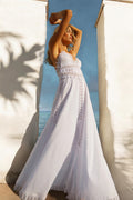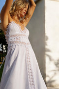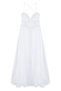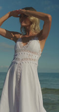 With triangular cups, scalloped guipure edging and slit in four; Imagen is feminine and pretty. An open, criss cross back adds something to Imagen, and the the maxi finish means Imagen is the perfect accompaniment to a Summer’s day.
