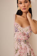 Be embraced by the elegance of the IRASO dress, a long piece that blends romance and freshness in every detail. Crafted in cotton with a delicate floral print, it features fine straps for a light touch and a flared skirt that flows naturally, creating movement and a graceful silhouette. A versatile and feminine design, perfect for summer looks with timeless charm.