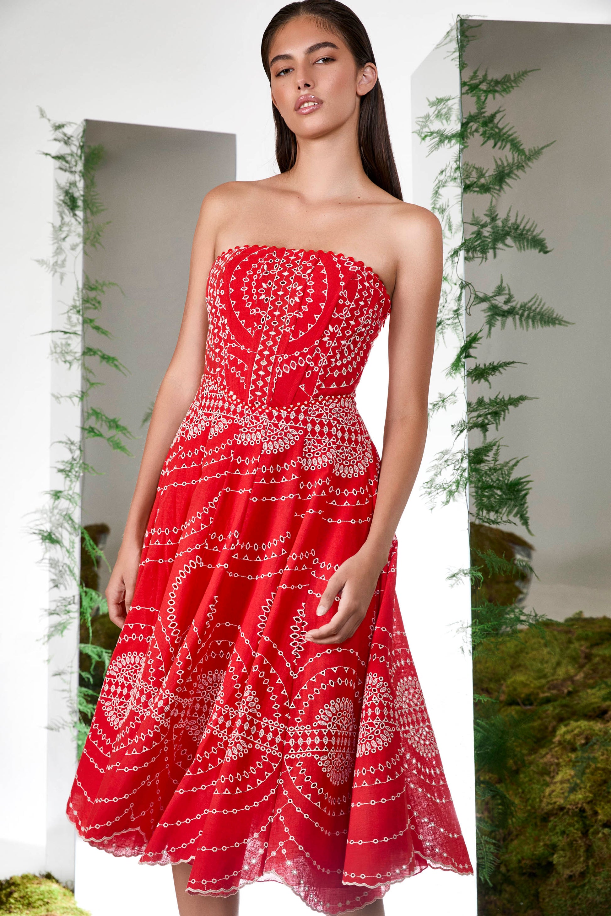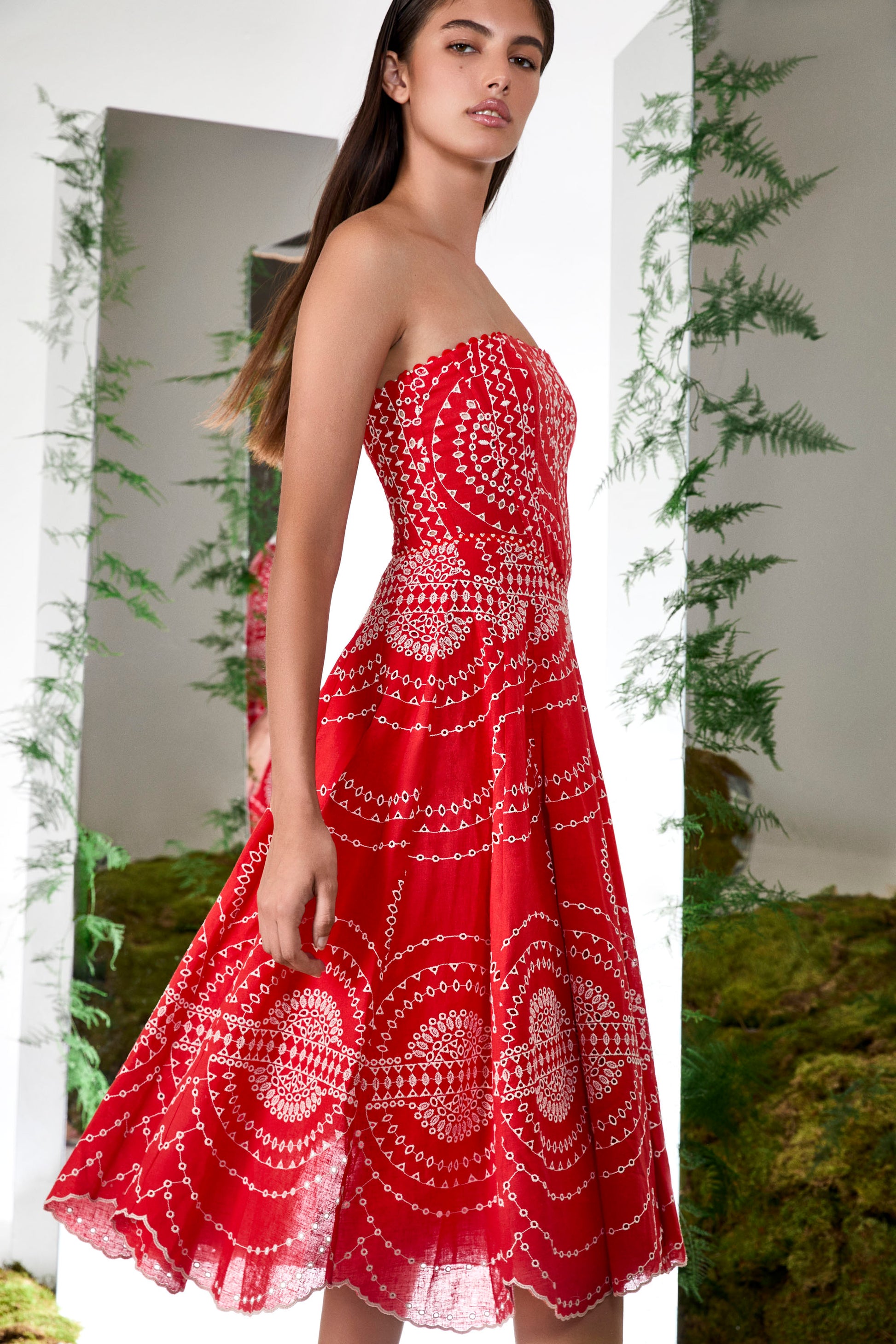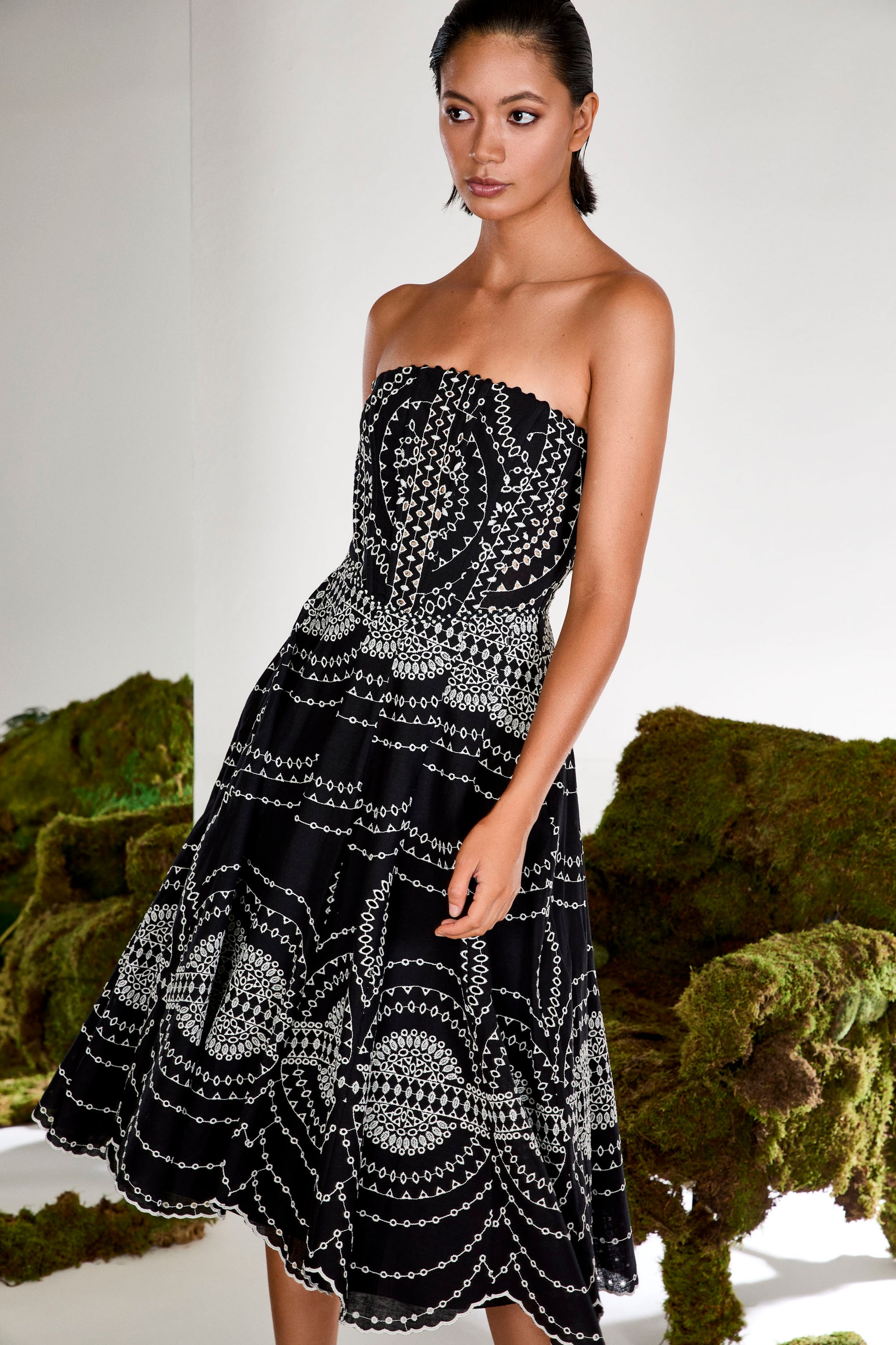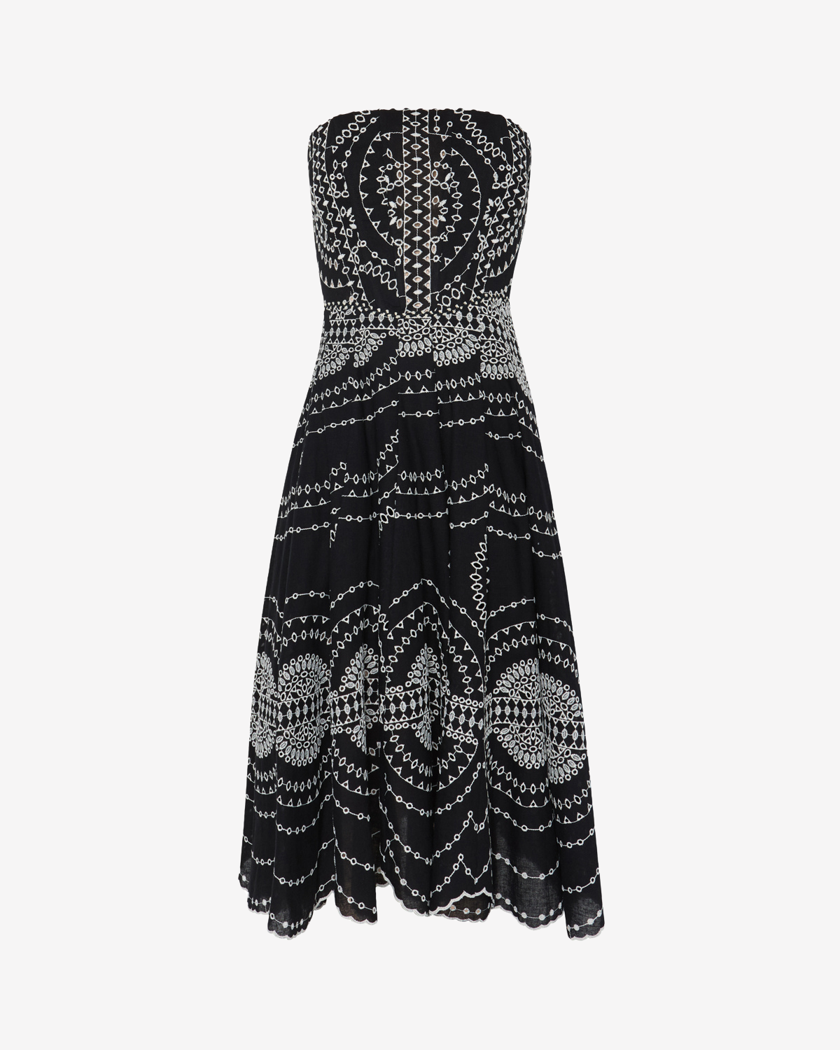 The long IRIS dress is a statement of feminine elegance. Crafted in embroidered cotton-linen blend, its embroidered bodice is framed by a strapless neckline. At the bottom, its midi skirt adds movement and lifts your silhouette.