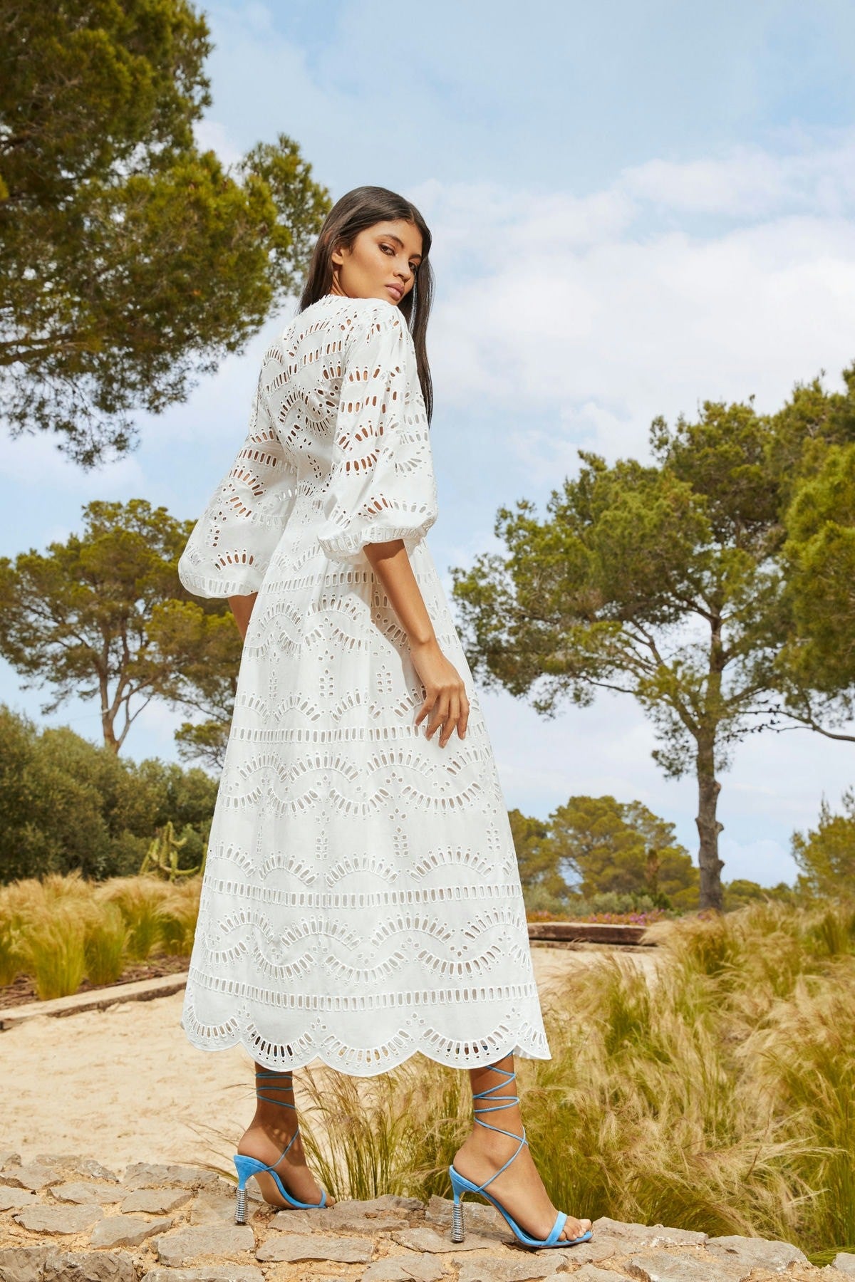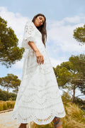 The long shirt-like dress Kika is a fresh and elegant piece thanks to its gorgeous embroidered fabric. The soft lines of the sleeves and neckline combine perfectly with the lightweight volume of the skirt.