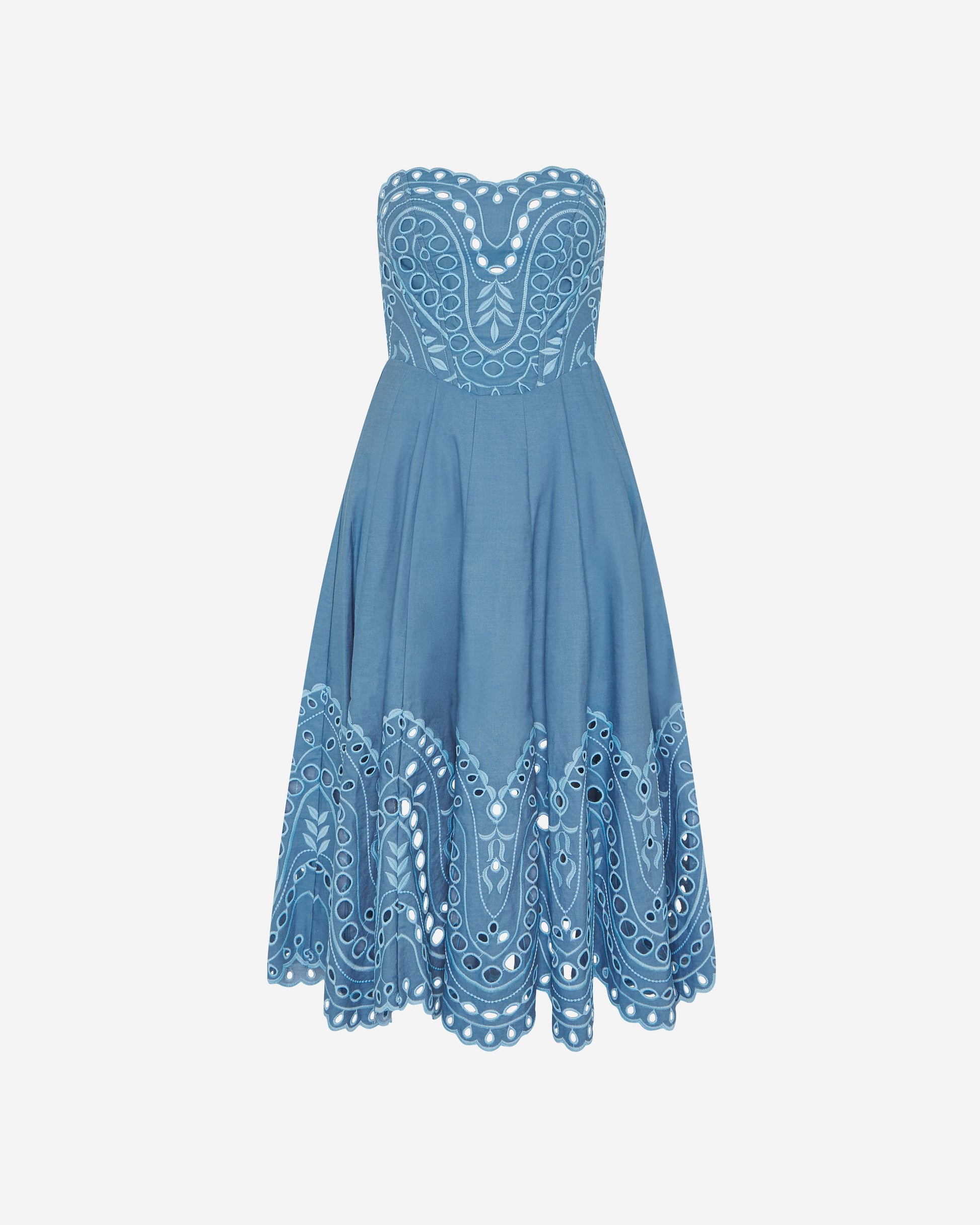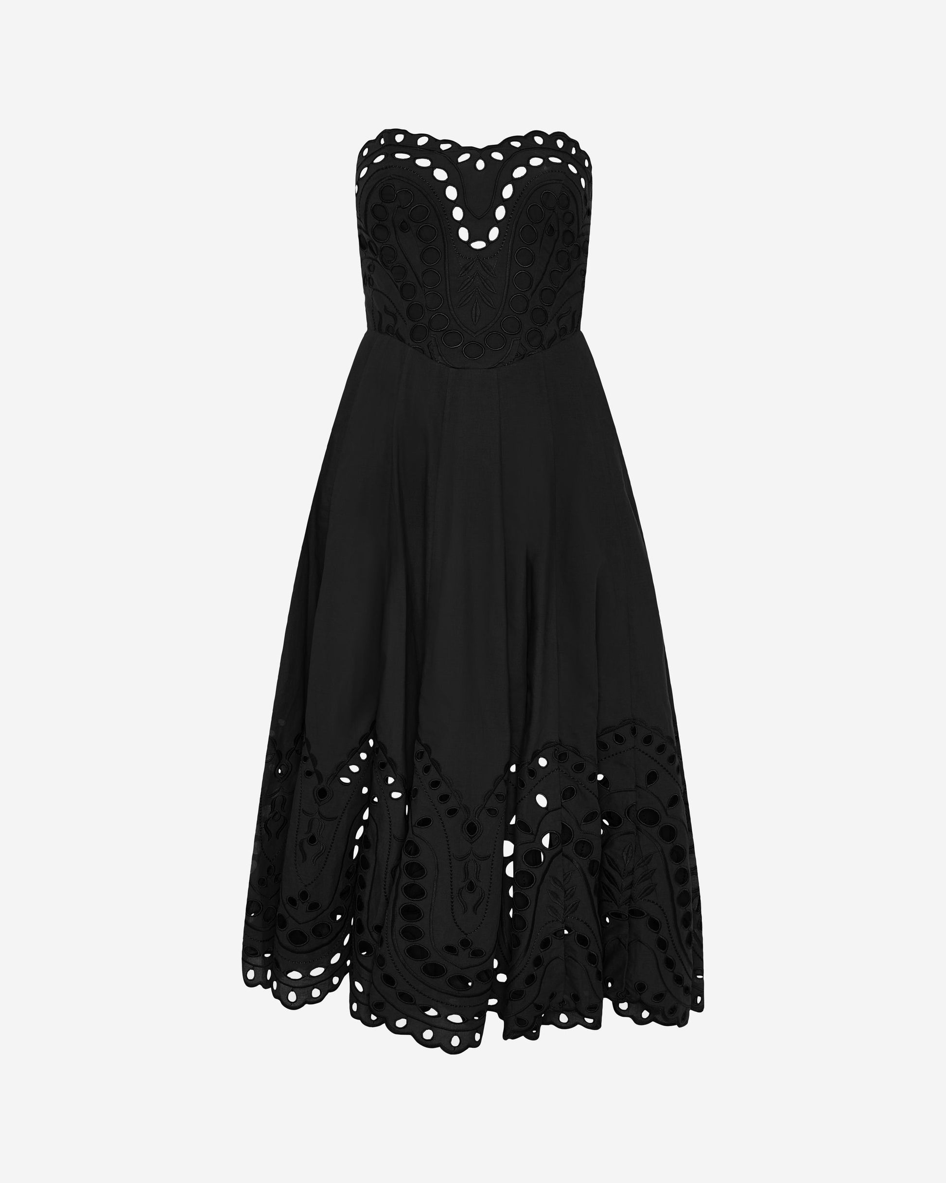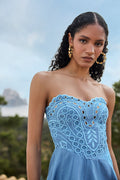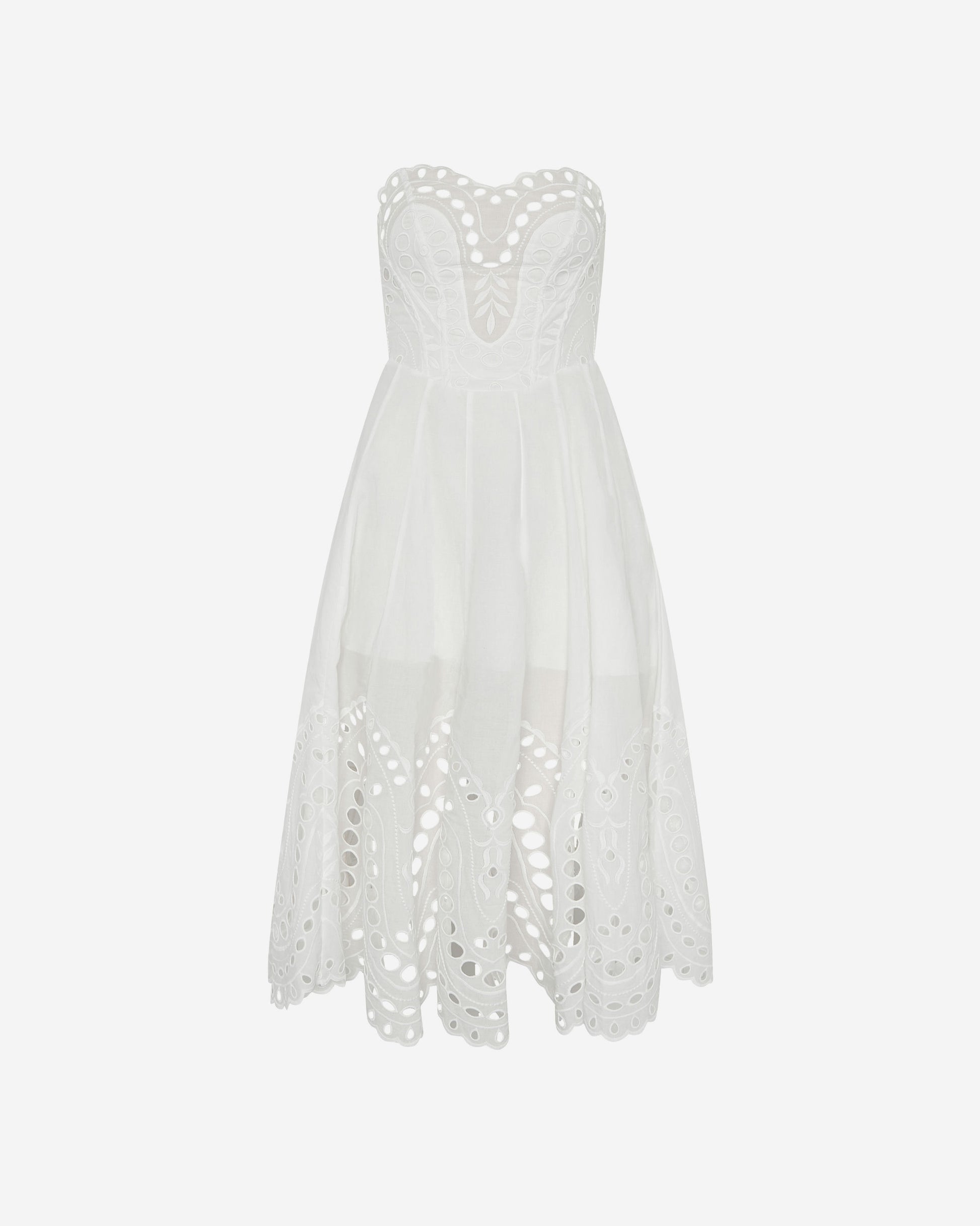 The MARLIN dress is pure elegance with a romantic soul. Its structured bustier with a scalloped sweetheart neckline gently enhances the bust, while the fitted bodice sculpts the silhouette with precision.