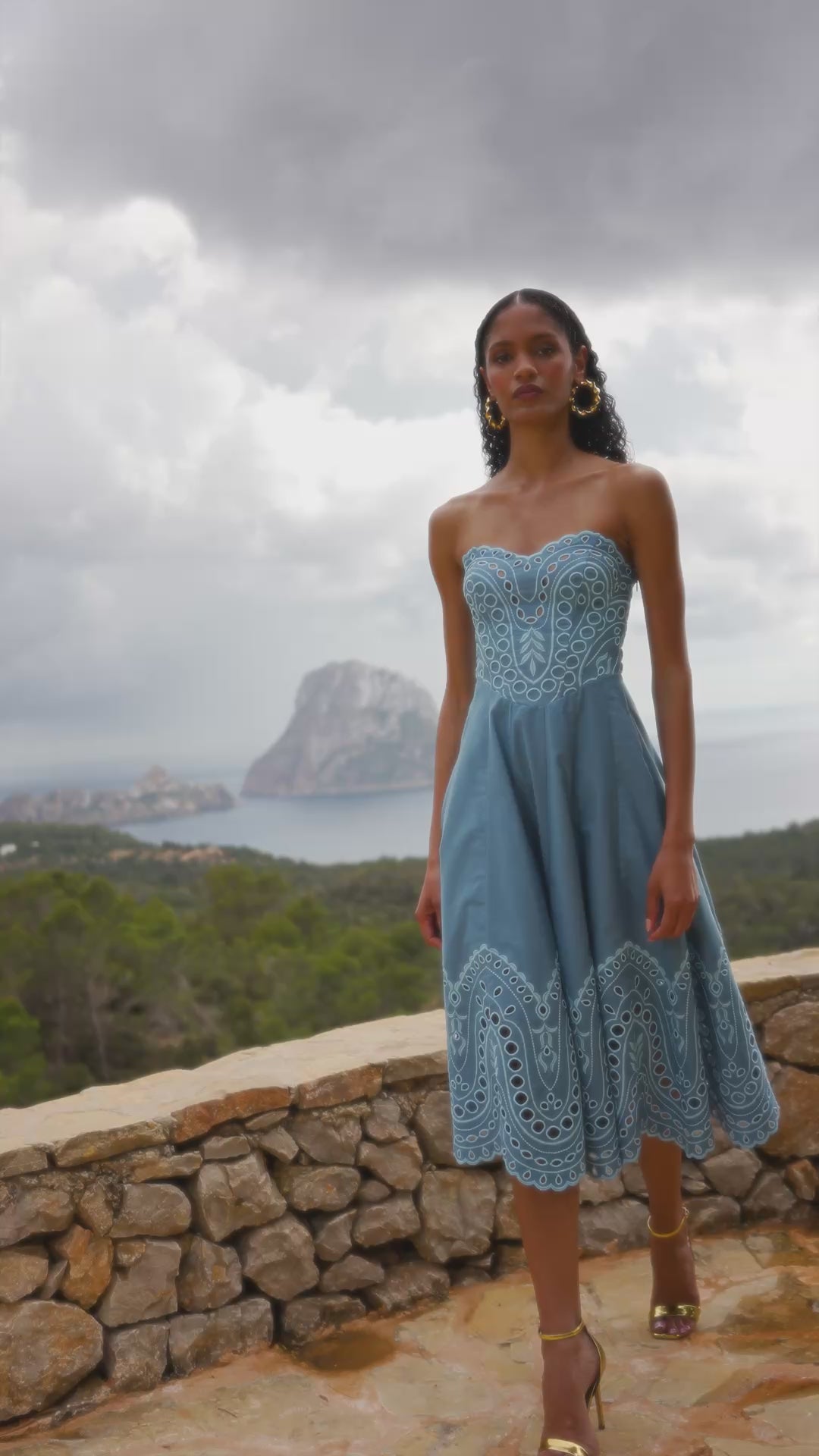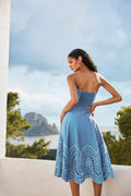 The fluid midi-length skirt, finished with artisanal embroidery along the hem, adds movement and sophistication to every step. A timeless, feminine piece — perfect for moments when subtle beauty speaks volumes.