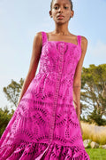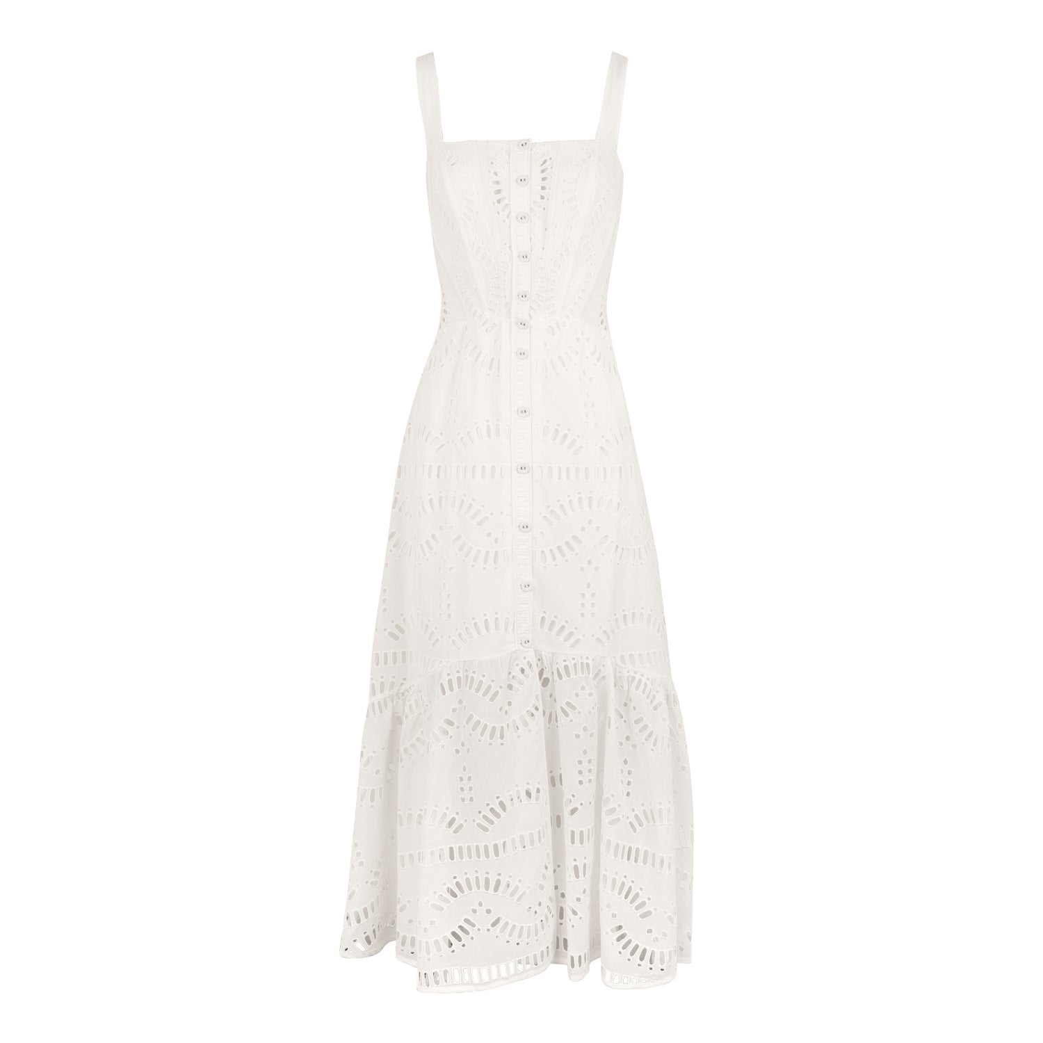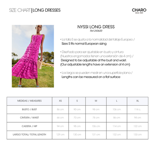 Our Nissy dress is a must for this season, that combines an extra feminine with an extremely fresh touch. Its decline with straight lines and the shape of the lower ruffle finish delicately this soft piece made from embroidered fabric.