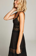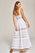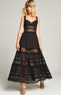 Intricate guipure panels and detailed straps, the maxi style of Sophia would be perfectly styled with tan coloured accessories and flowing hair.