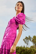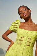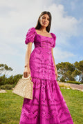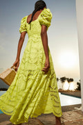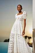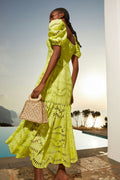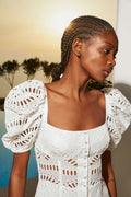 The silhouette of our embroidered Spiana dress is an ode to sophistication. Its gorgeous sleeves are followed by the delicate neckline all the way to the feminine bust area. This soft piece is finished by its gorgeous movement of the lower end of the skirt.