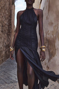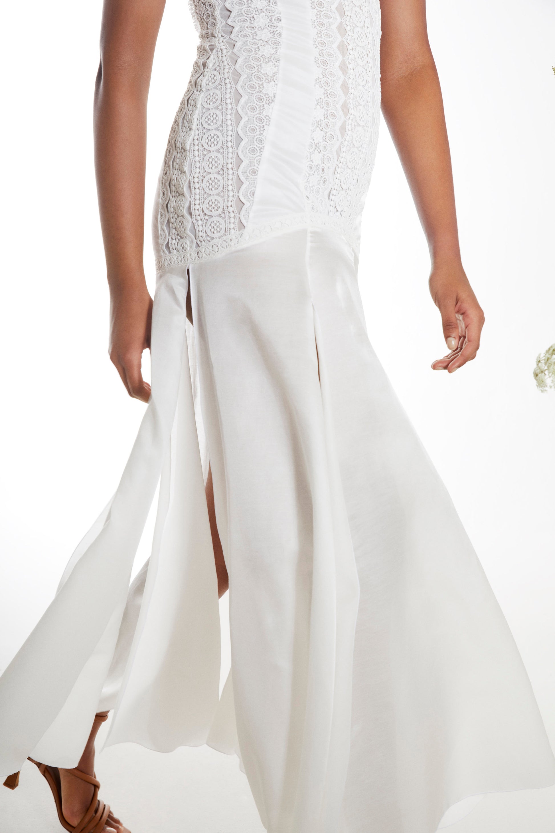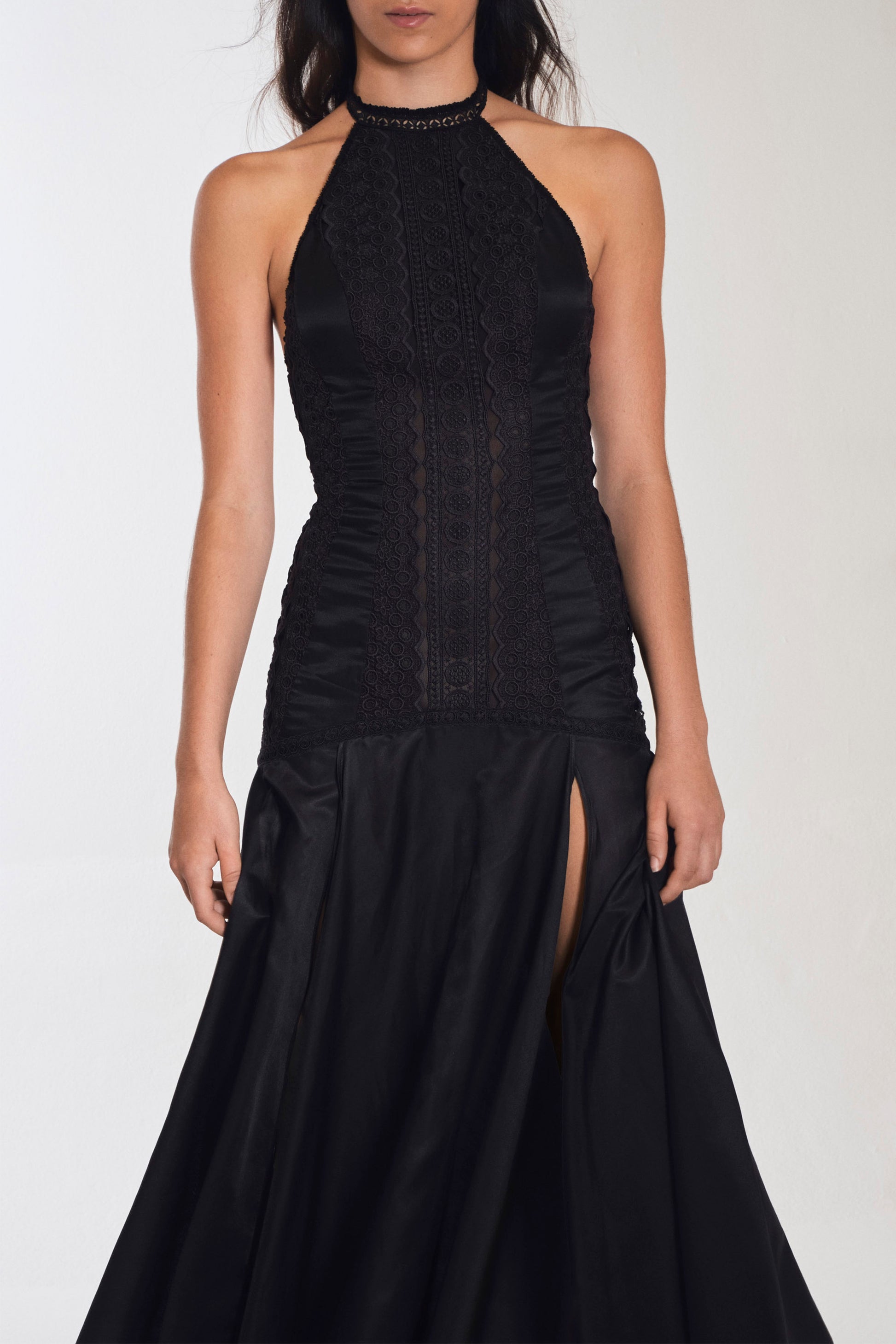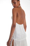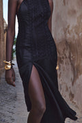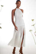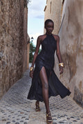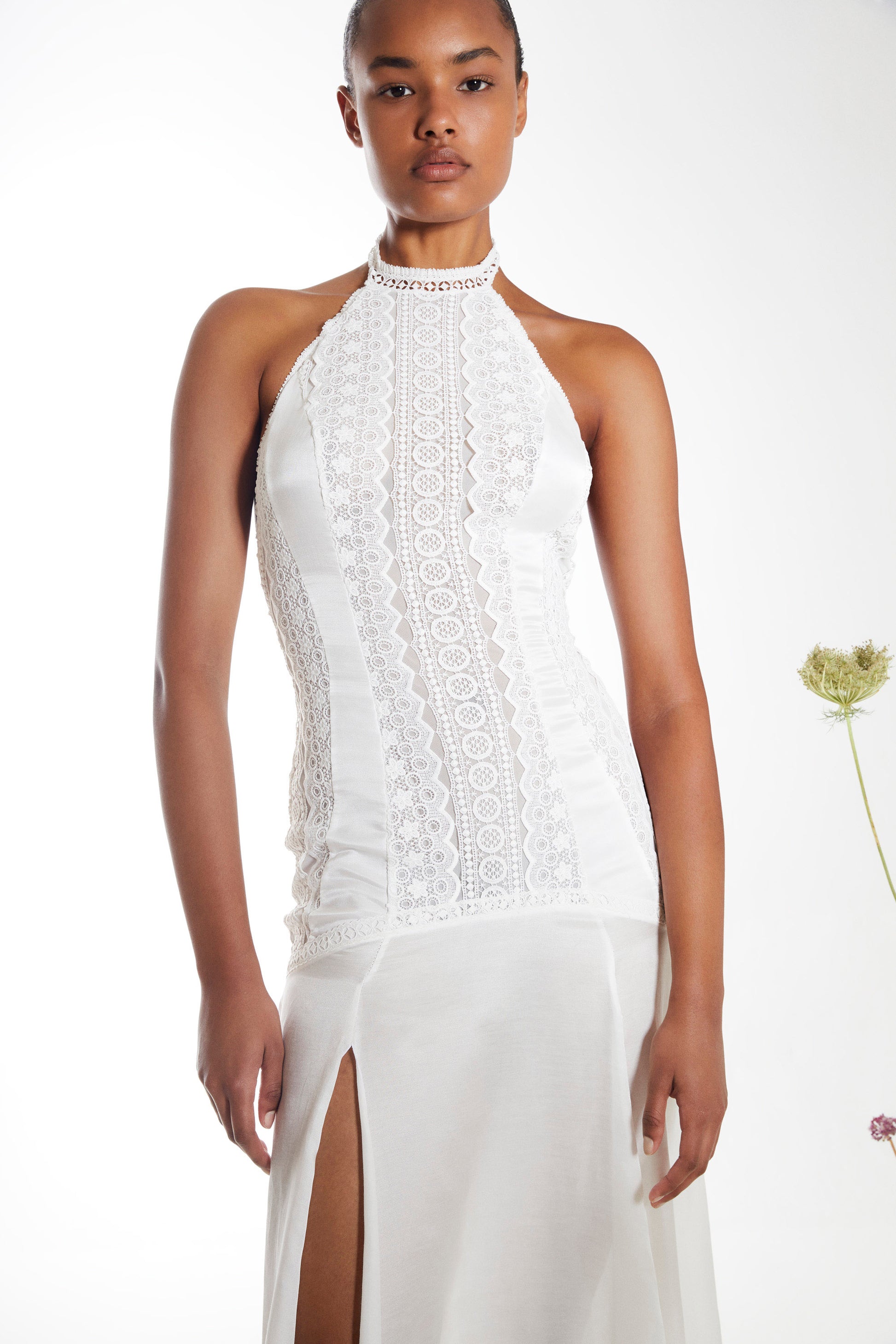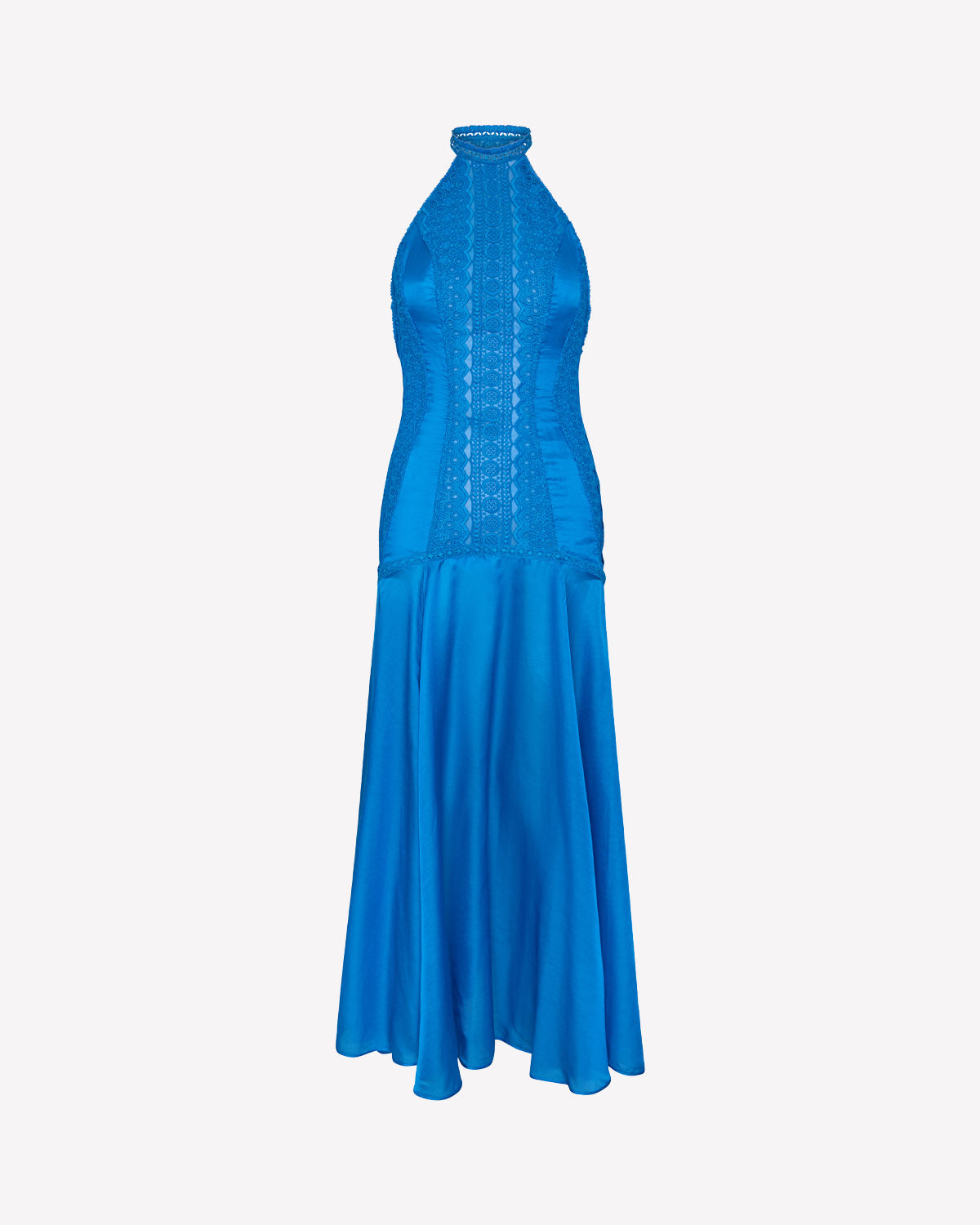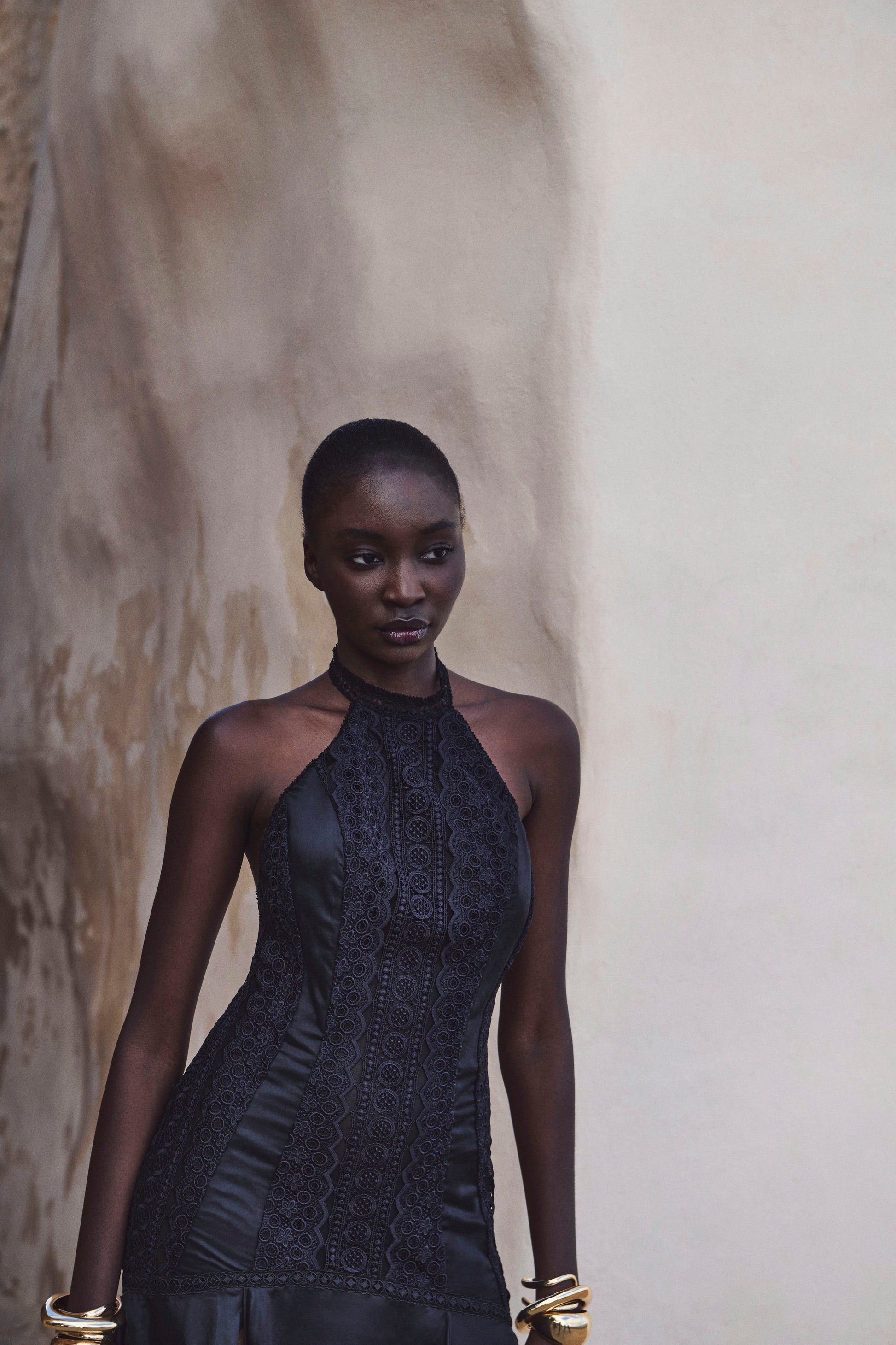 Our TAREL dress is the star of the season, thanks to the elegance of its guipure structure. With a halter neckline and a sinuous silk-cotton skirt, it adapts to your silhouette. It’s textures and intricate low-cut bodice will make you feel spectacular all season long.