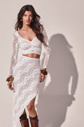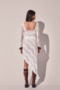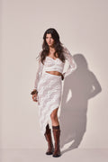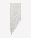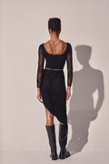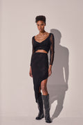 Feel the flow of the CASCADE skirt, an asymmetric silhouette that hugs the body with contemporary elegance. Crafted in textured mesh with a wavy pattern, its irregular cut creates a draped effect reminiscent of flowing water. Fitted at the waist and hips, it enhances the figure with a perfect balance of allure and refinement. Ideal for evening looks or styled statements with character.