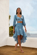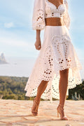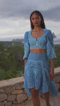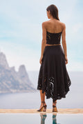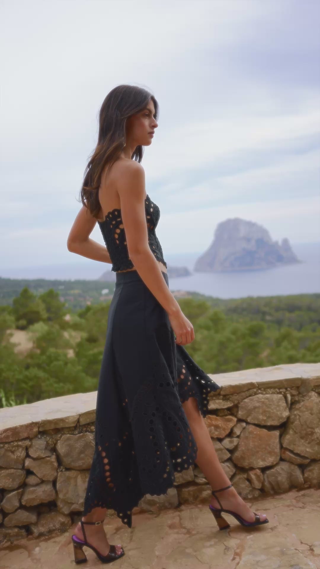 The FINN skirt is a sophisticated design that blends structure and movement with delicate finesse. Its paneled construction cinches the waist with precision and opens into a fluid flare that enhances the silhouette effortlessly.