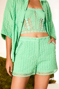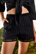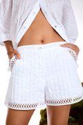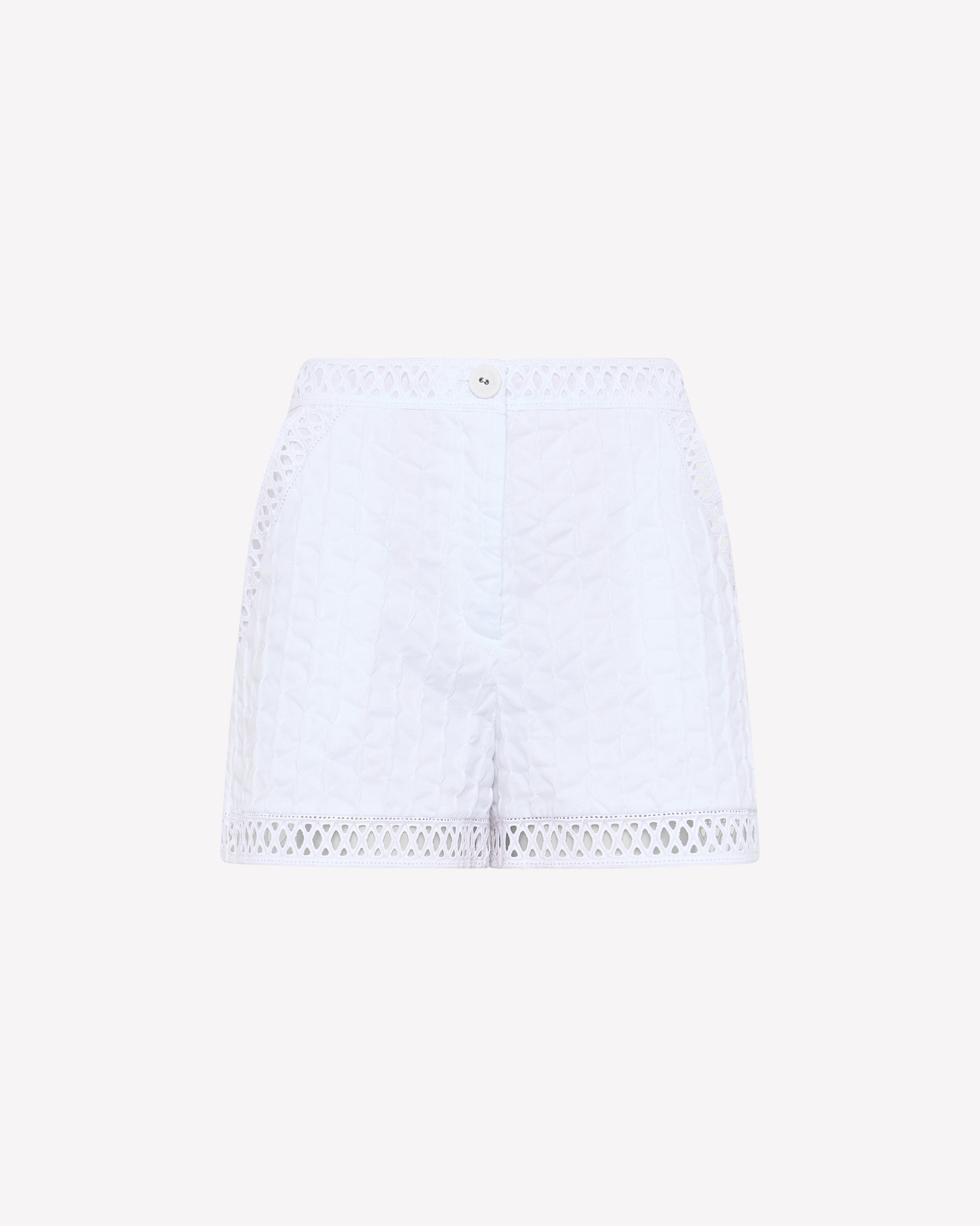 The Anture shorts, in cotton voile, are the statement piece for any look. Its elevated embroidery throughout the garment adds texture and 3D effect, while its cotton guipure trim at the ends, waistband and pockets embellish this feminine piece.