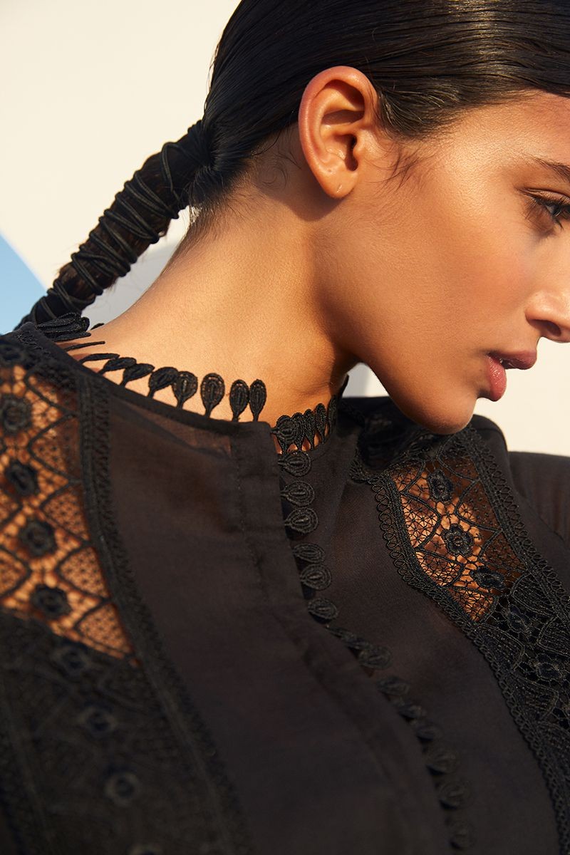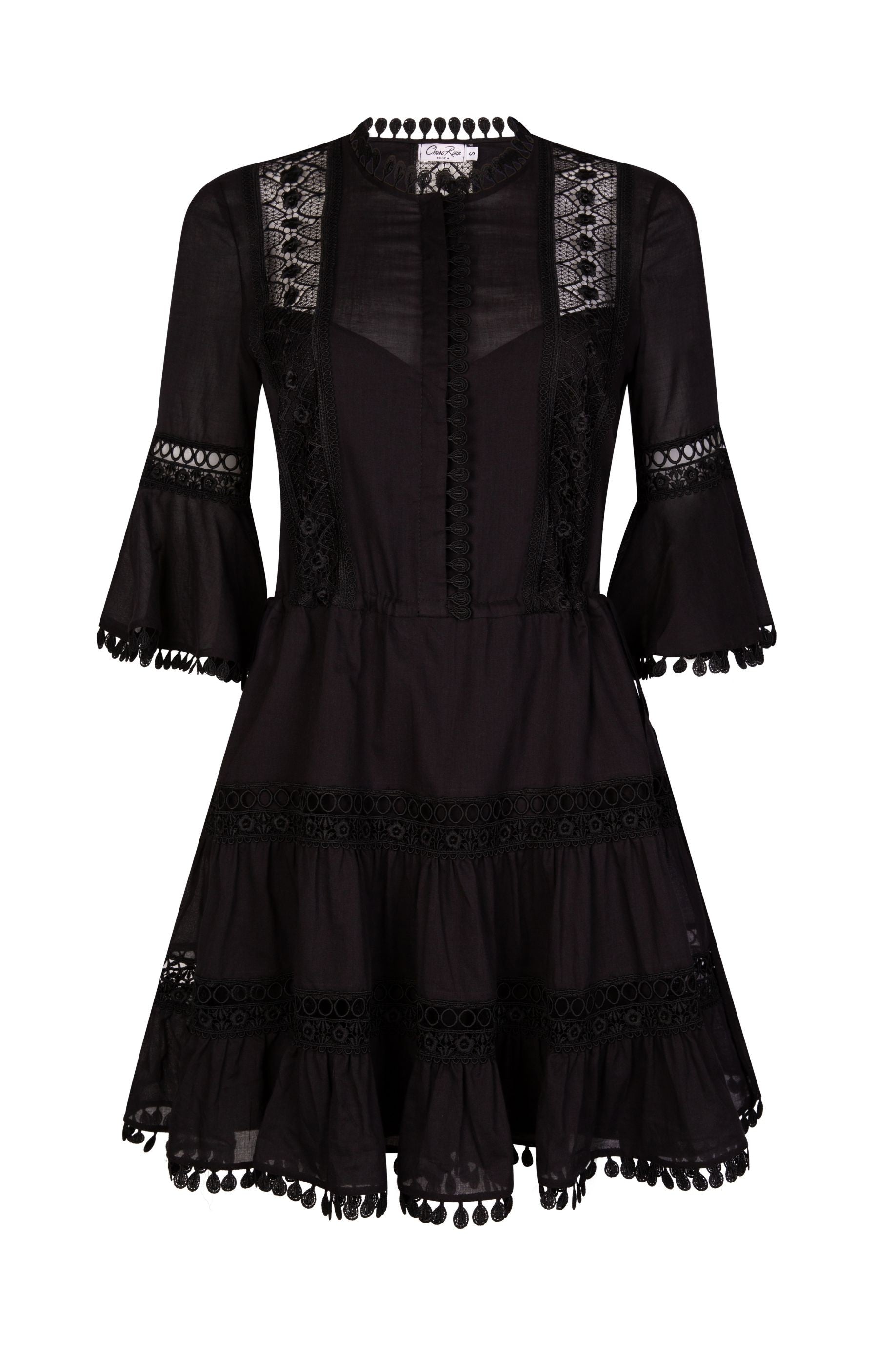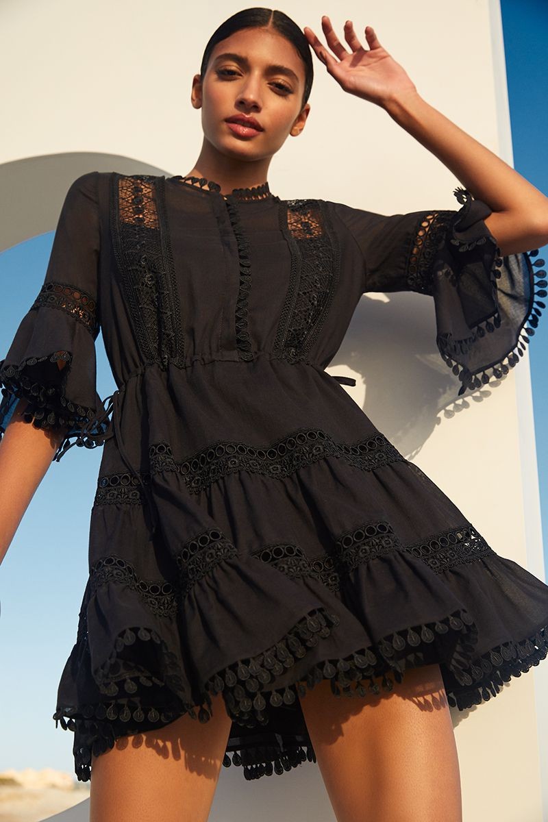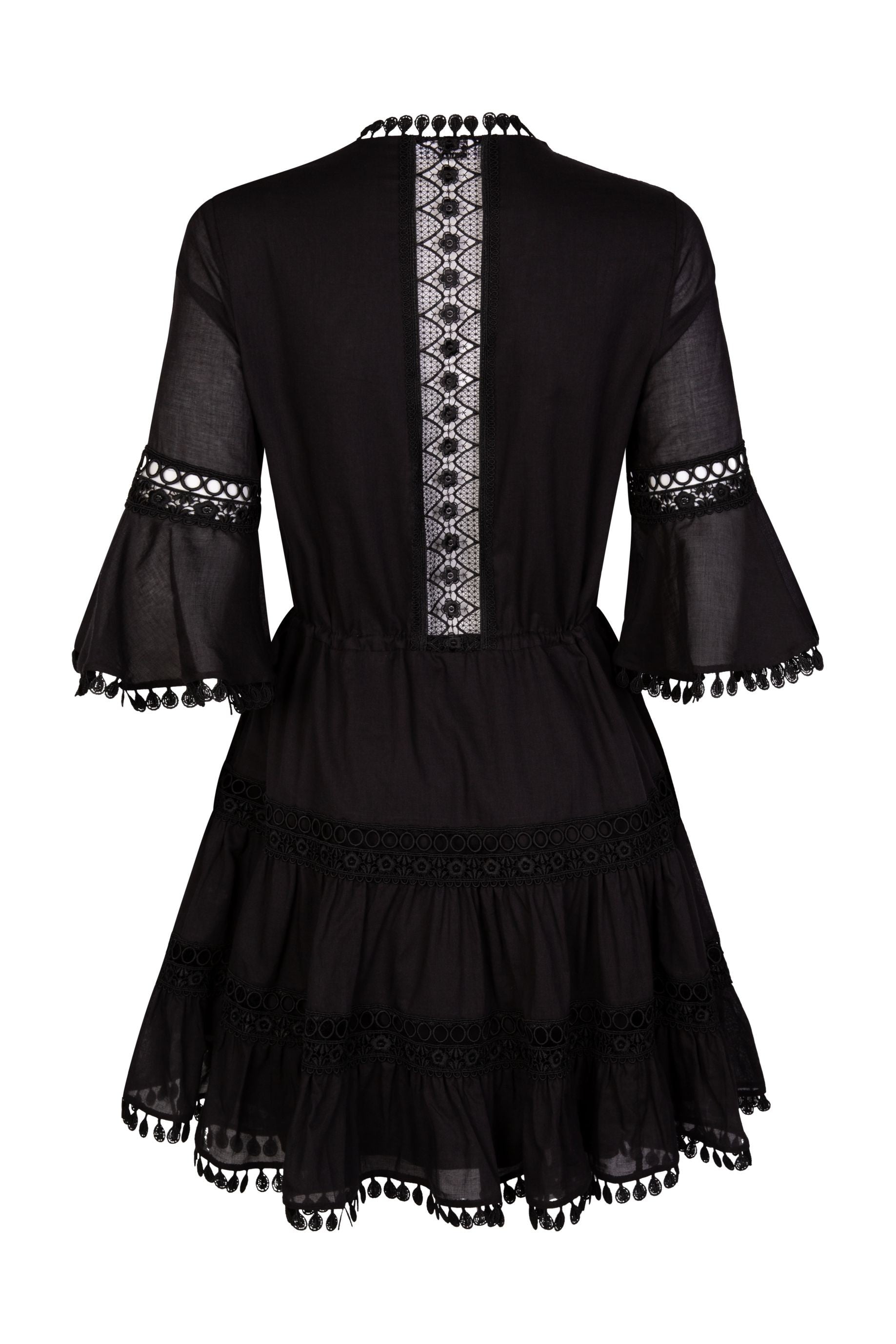 Agatha is the short shirt dress that will become a rapid staple in your summer wardrobe. Its flared sleeves and adjustable waist create a lightweight and versatile silhouette. The triple ruffle skirt made of our 100% cotton voile and adorned with beautiful guipures sways beautifully in the summer breeze.