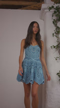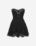 The BAIL dress is an iconic piece that blends femininity and movement with a sophisticated flair. Its scalloped sweetheart neckline frames the bust with elegance, while the fitted bodice sculpts the silhouette with precision.