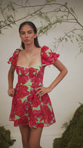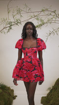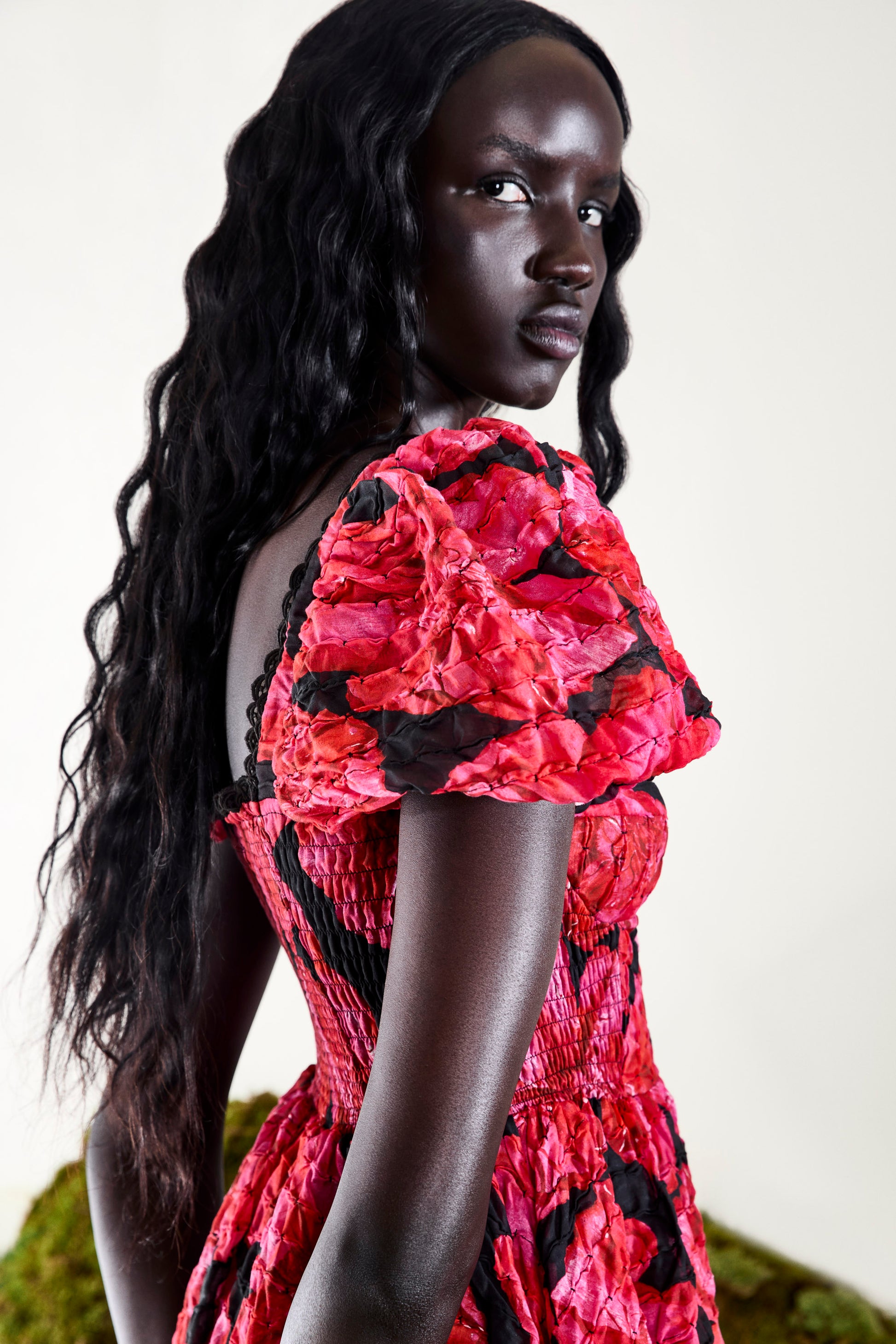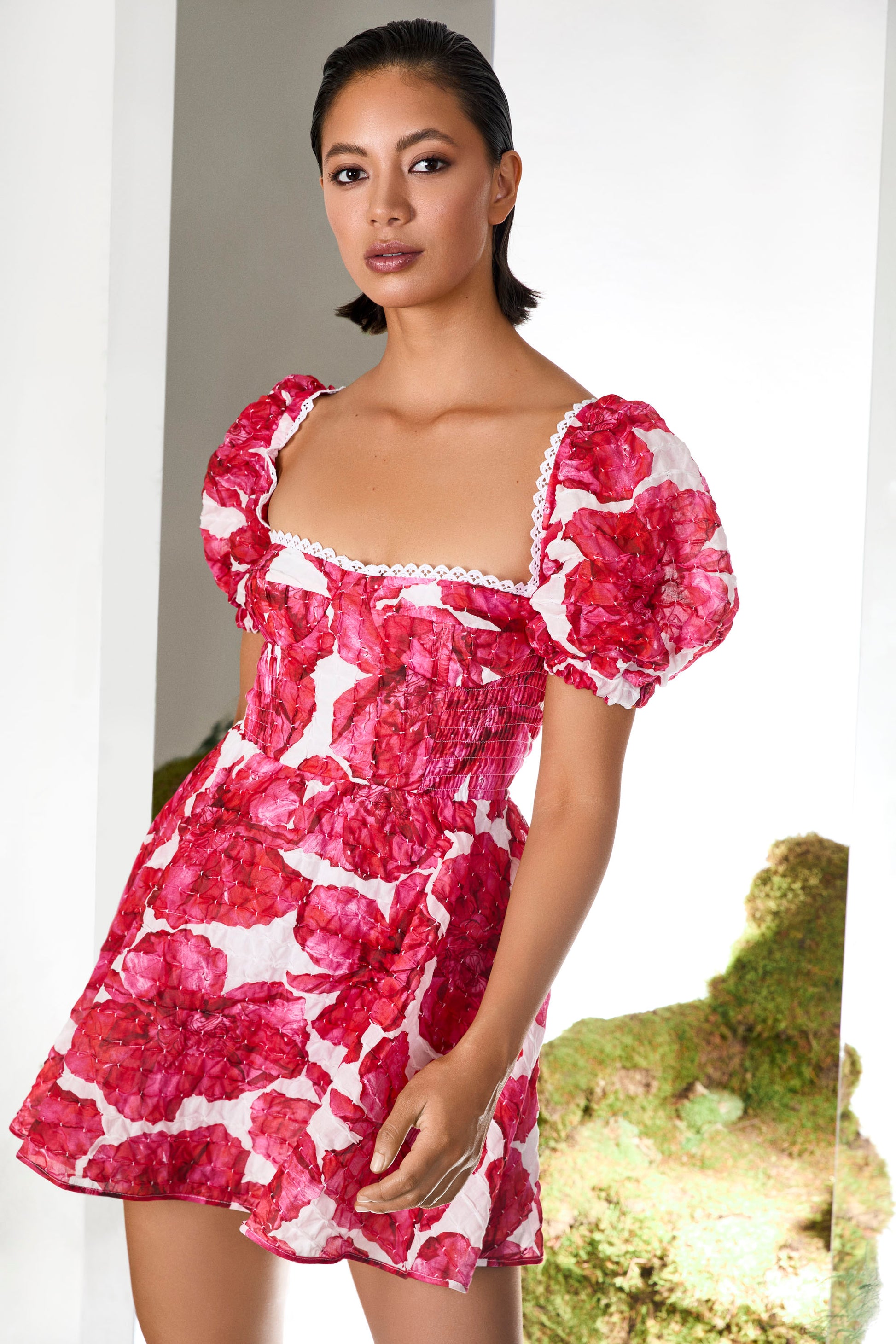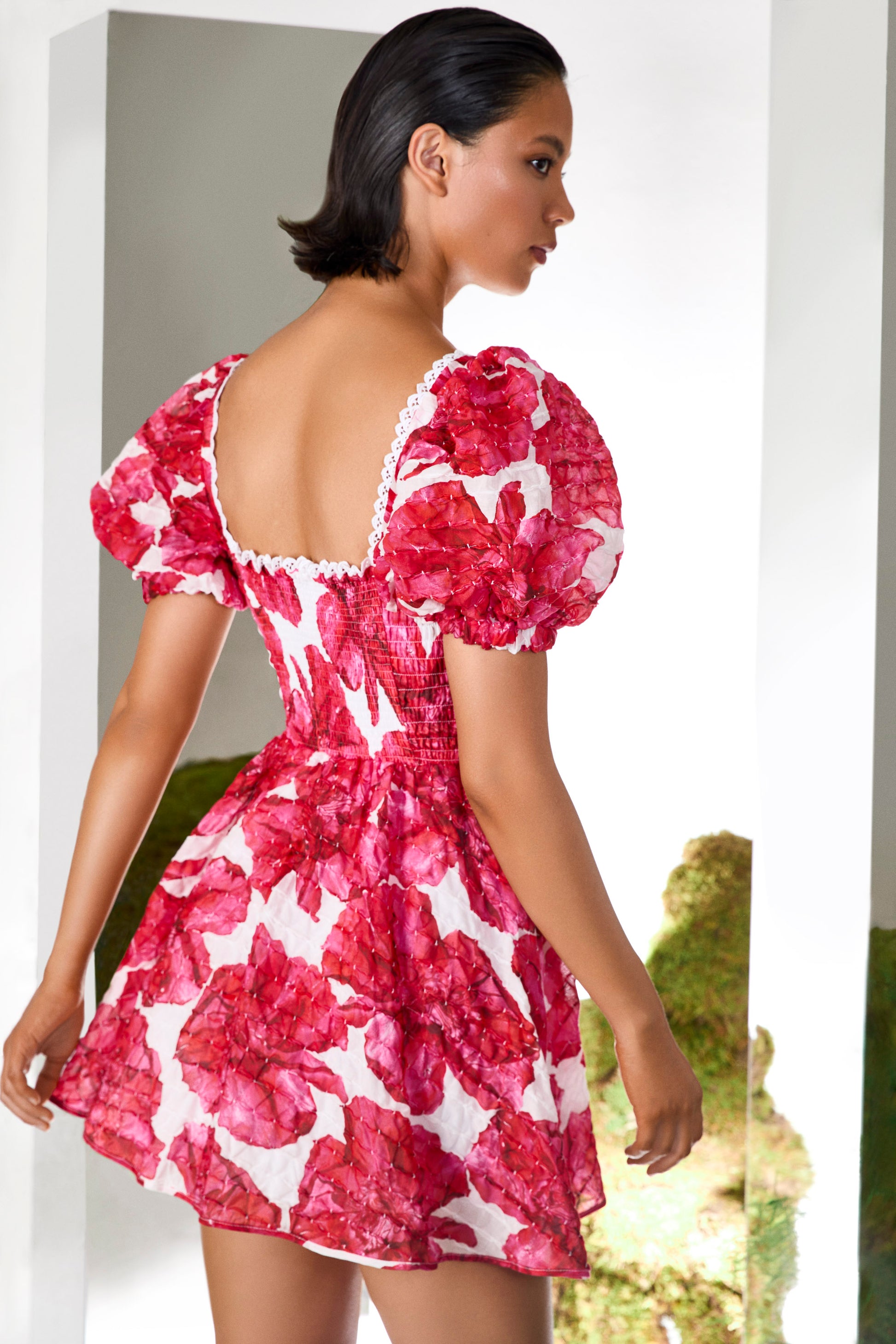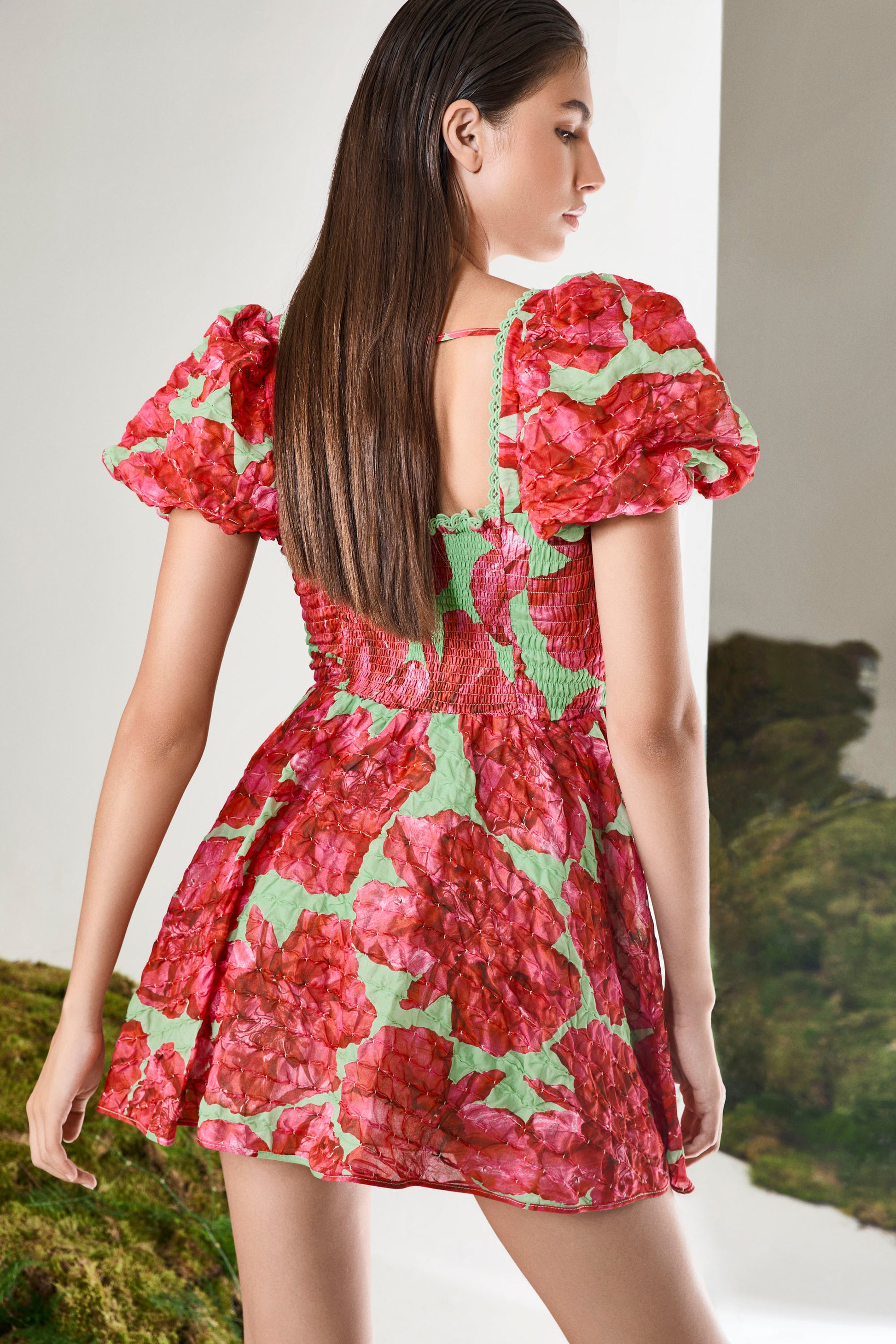 The CEILE mini dress, made of cotton voile, gives you a feeling of softness and lightness thanks to its fresh 3D embroidery and summery print. Its voluminous sleeves complement the slightly flared neckline and then end at the waist in a beautiful full skirt.