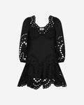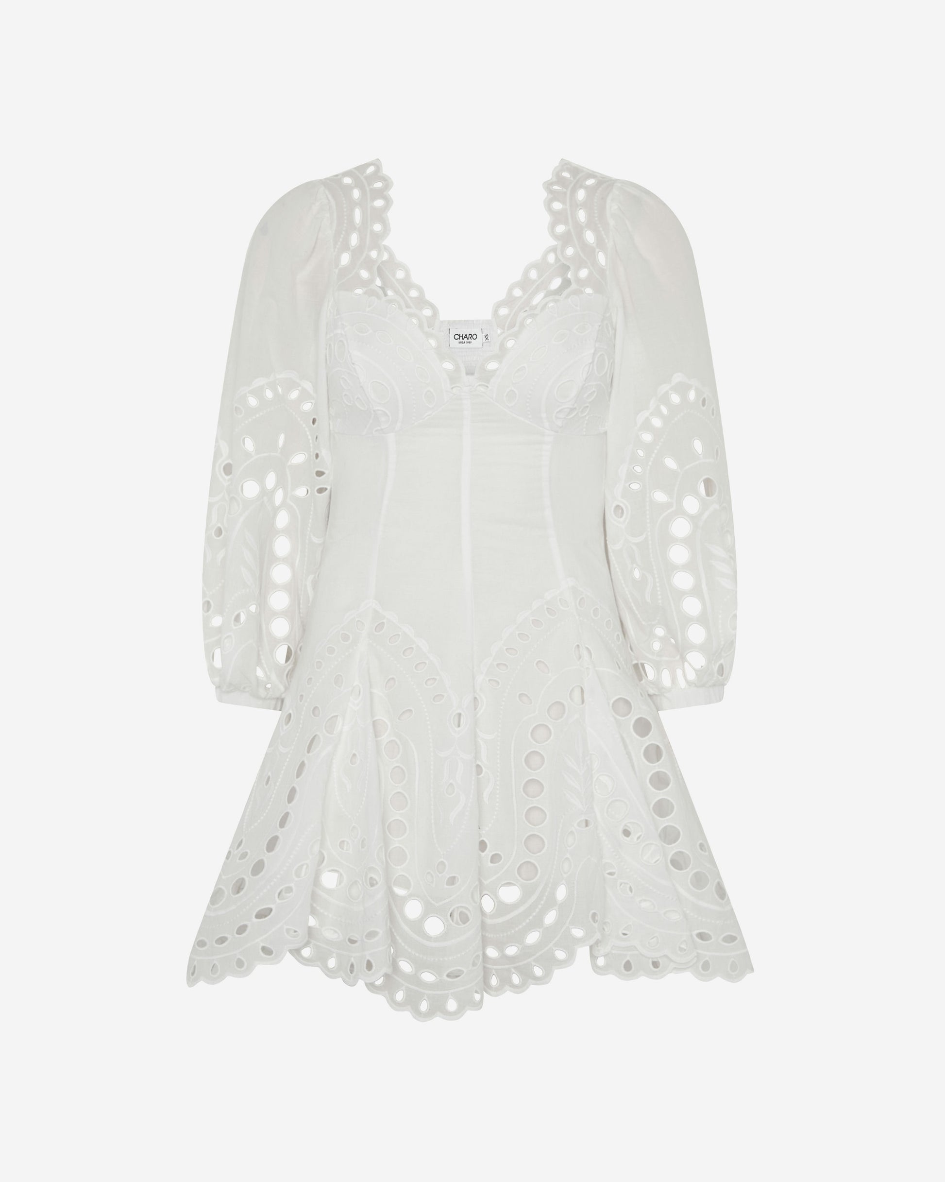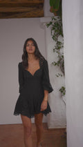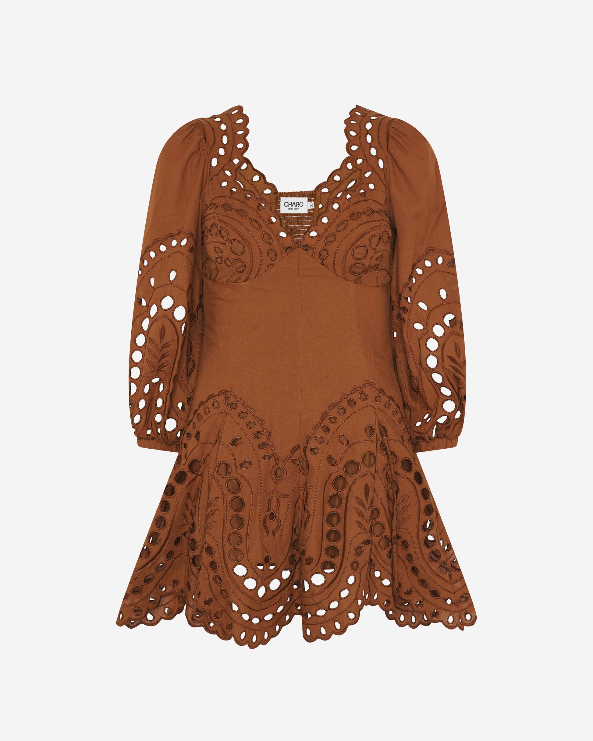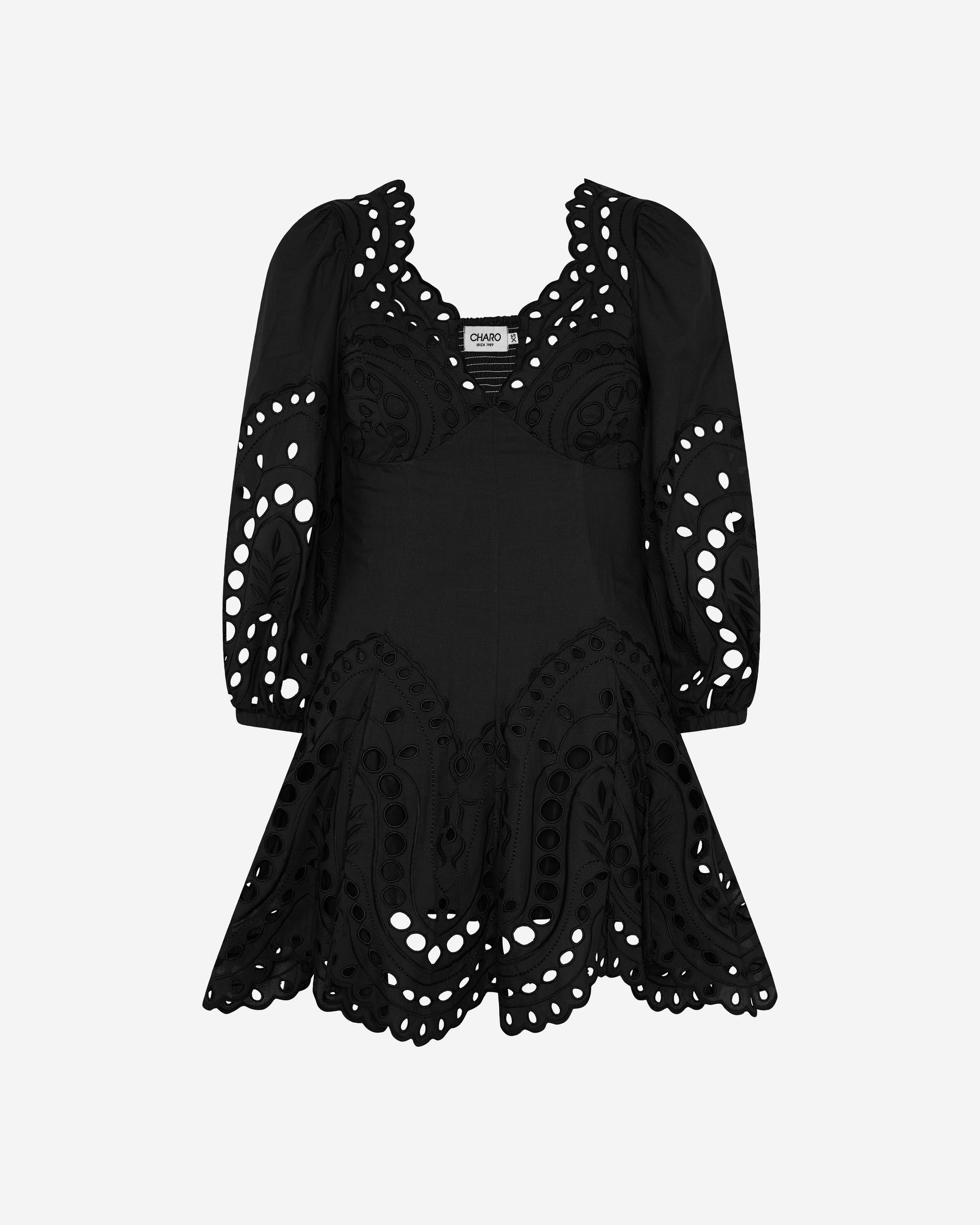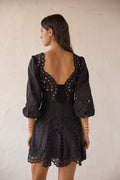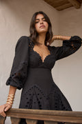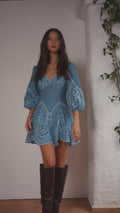 The 3/4 puffed sleeves bring volume and balance, creating a beautiful contrast between softness and strength. The skirt, crafted with structured panels and artisanal embroidery, flows with movement and texture. A one-of-a-kind piece, perfect for truly unforgettable moments.