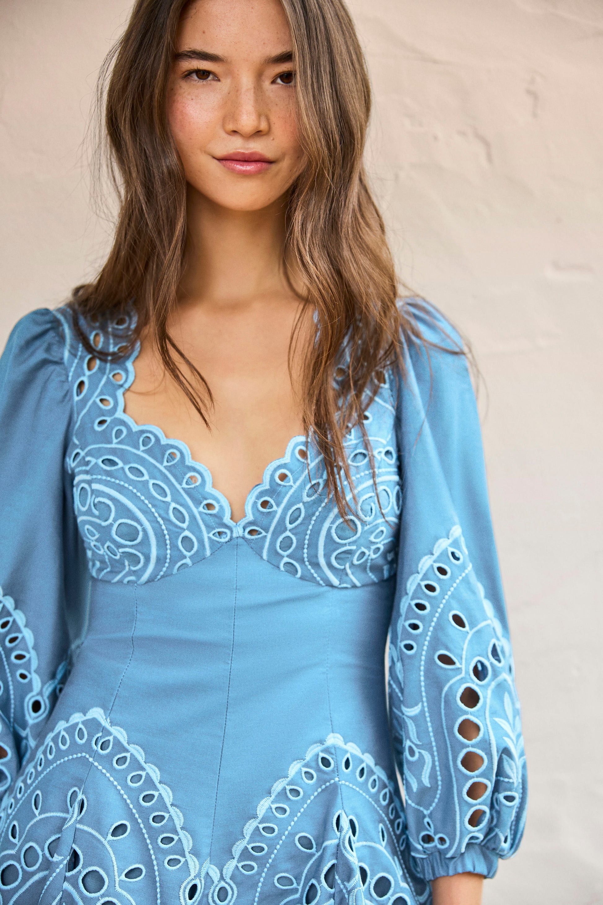 Designed to captivate from the very first glance, the ESMARE dress blends romance, character, and craftsmanship. Its scalloped sweetheart neckline gently enhances the bust, while the fitted bodice outlines the silhouette with graceful precision.