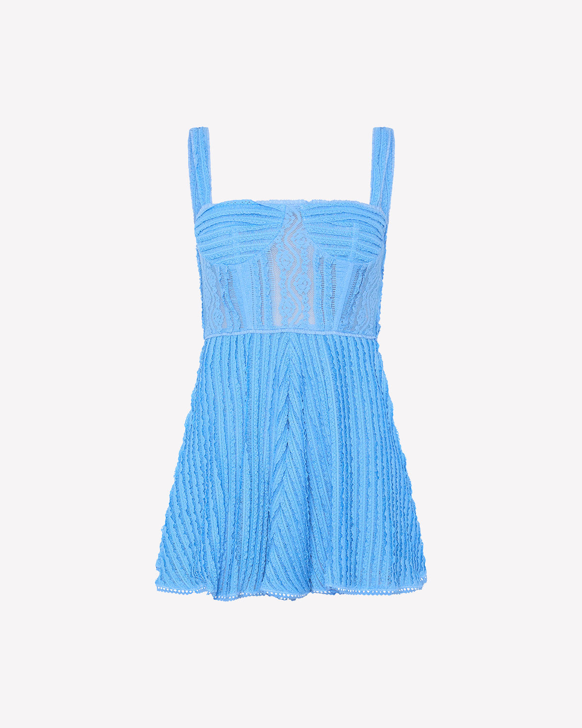 Our MAI mini dress is made of mesh and cotton and is perfect for elevating all your feminine energy. Its skater silhouette accentuates your hips, and its cups create a flattering bust supported by boning. Thick straps frame the neckline to complete this gorgeous piece.