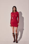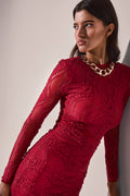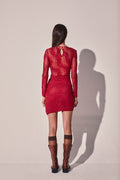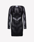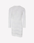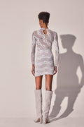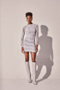 Stand out in the MIRAGE dress, a mini silhouette that merges structure and fluidity with sculptural precision. Crafted in mesh, it softly hugs the body, naturally enhancing the figure. The asymmetric design at the waist and hem adds visual dynamism and highlights its contemporary edge.Long sleeves and a crew neckline balance the play of sheerness, creating a refined and magnetic look.