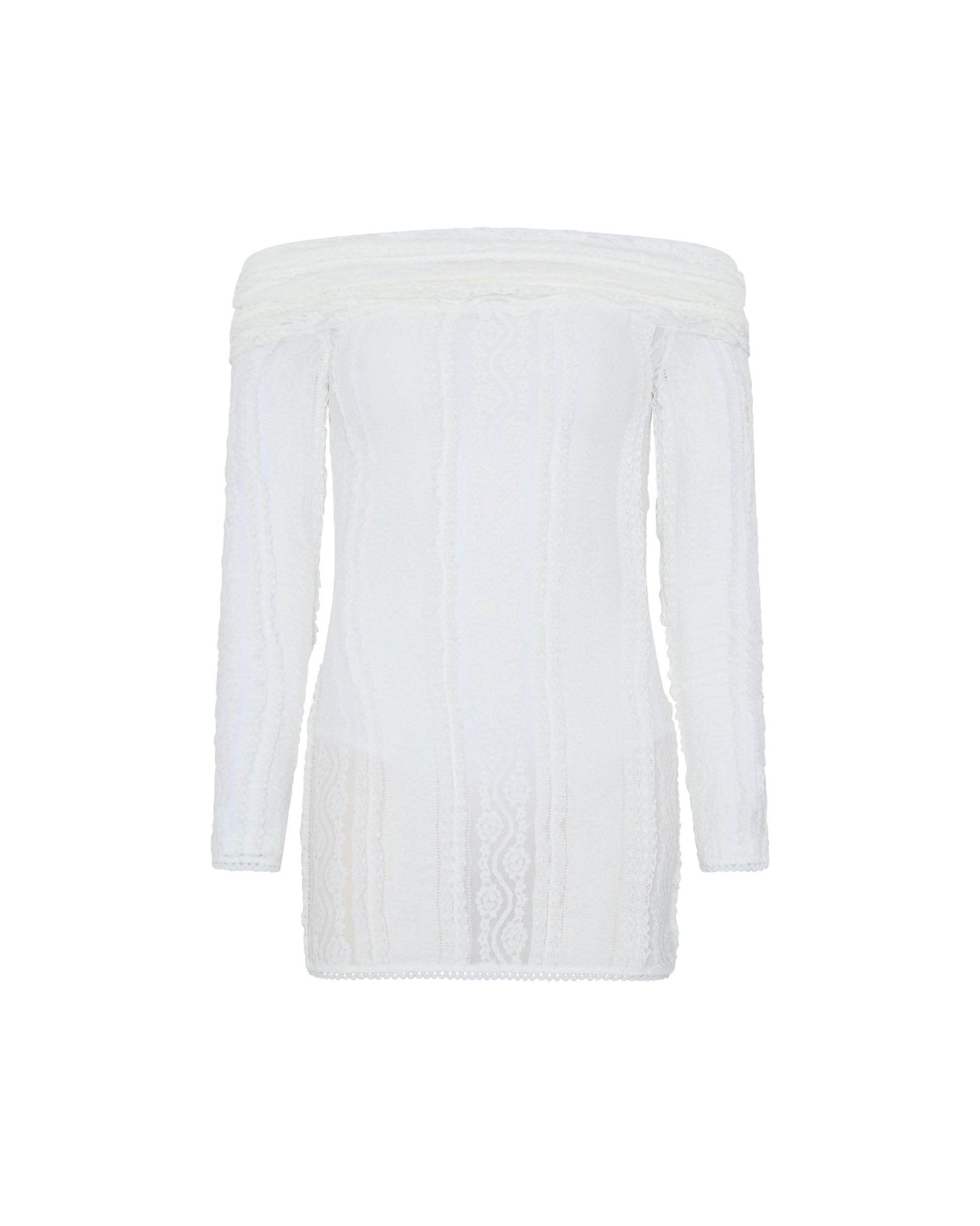 Feel both sensual and elegant in our NIK mini dress. The precious mesh fabric with cotton creates delicate textures, while the multi-position bardot neckline frames the shoulder line. The fitted vertical bodice and sleeves enhance your figure.