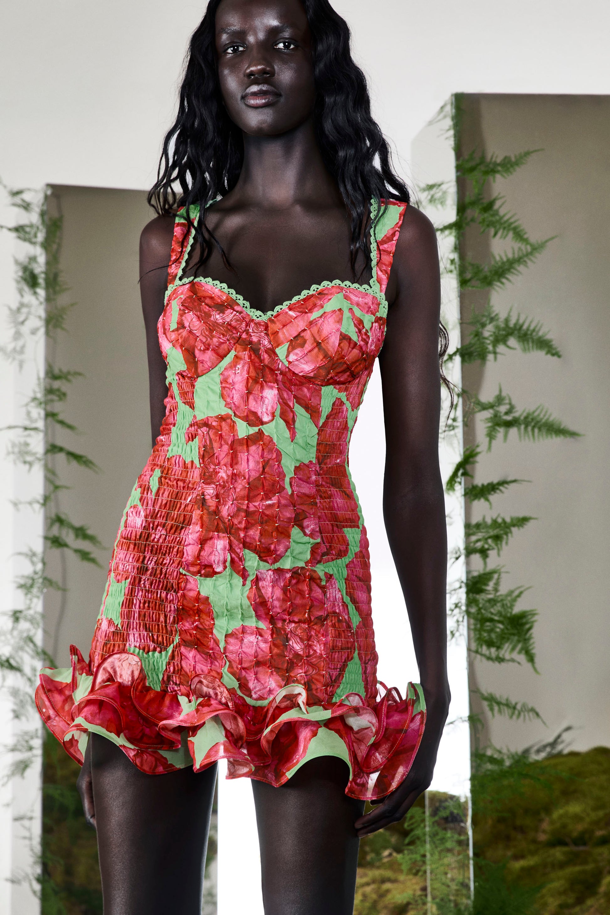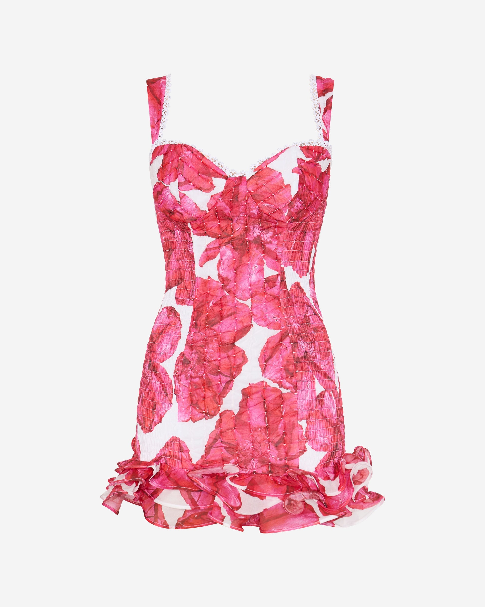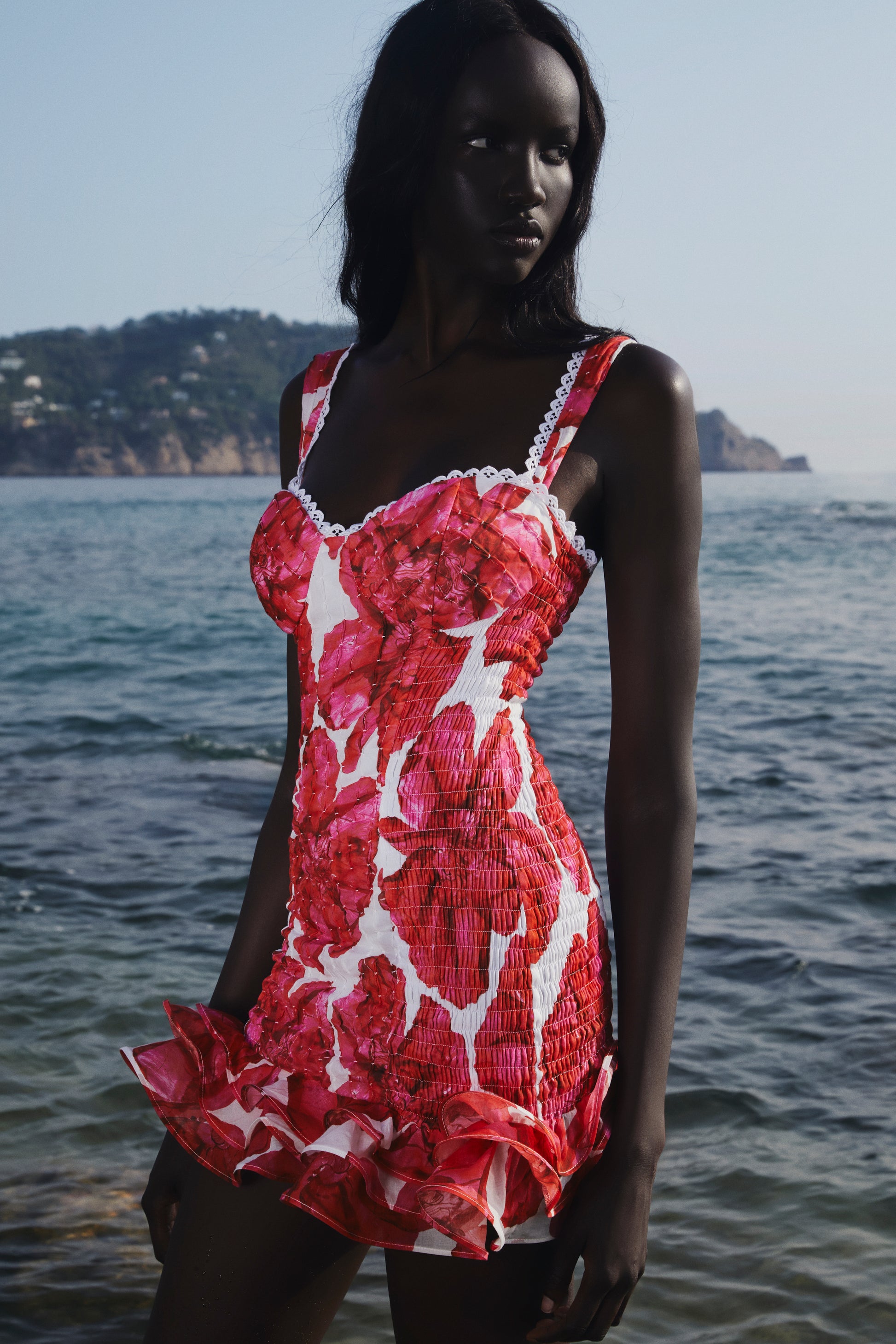 Our SUNIL dress is your ally for all your summer celebrations. Made in printed cotton voile, the fitted cut enhances your silhouette in a flattering way, highlighting your curves with elegance and style. The piece, with 3D embroidery throughout, combines a feminine sweetheart neckline and sculptural ruffles with the comfort of wide straps. The piece showcases our exclusive summery watercolor print.