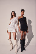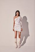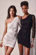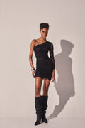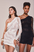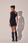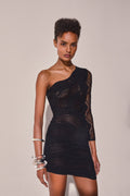 Radiate confidence in the ZEFIR dress, a one-sleeve mini silhouette that blends asymmetry with contemporary elegance. Crafted in mesh, it gently hugs the figure and enhances the body’s curves with ease.