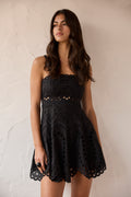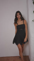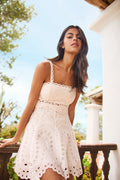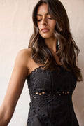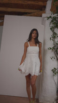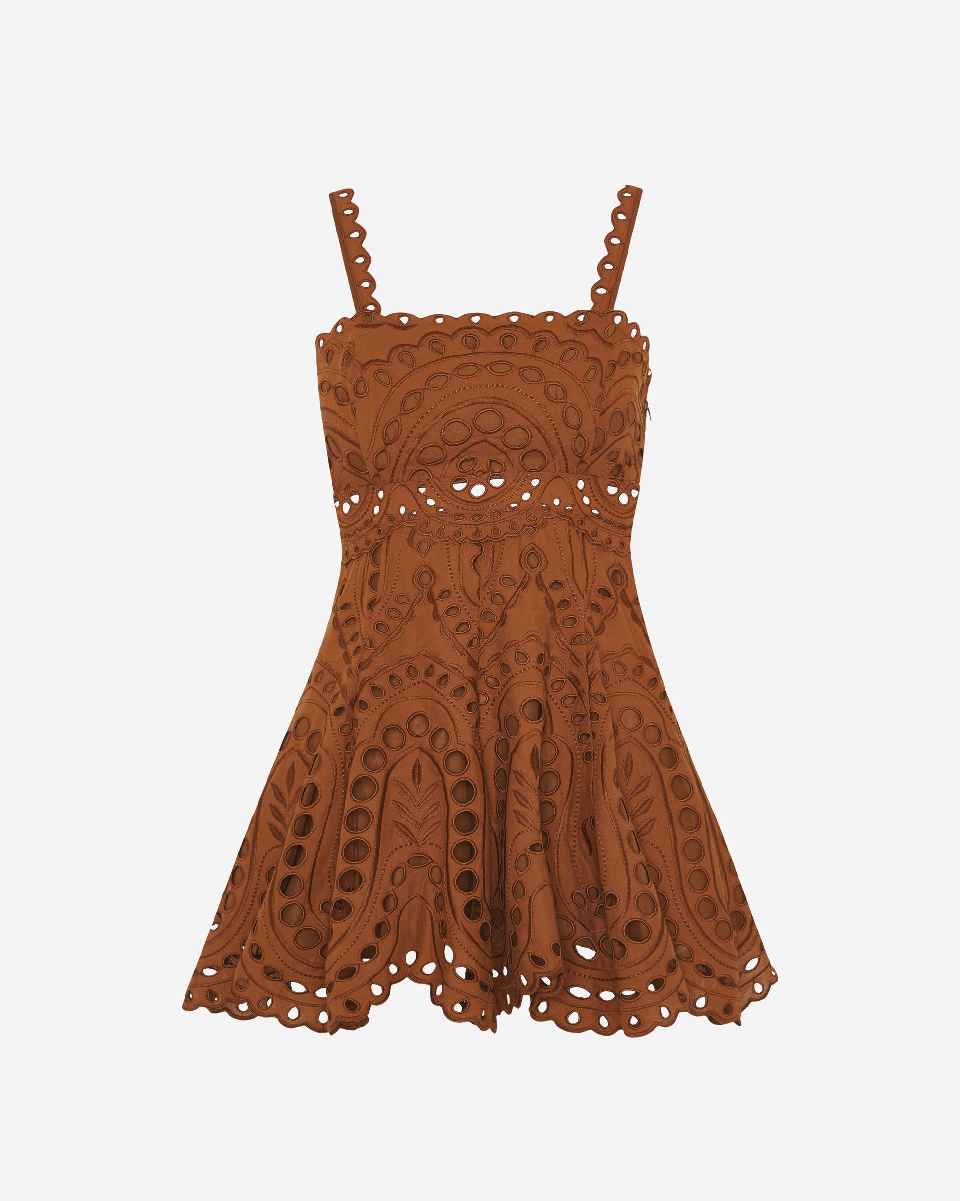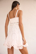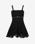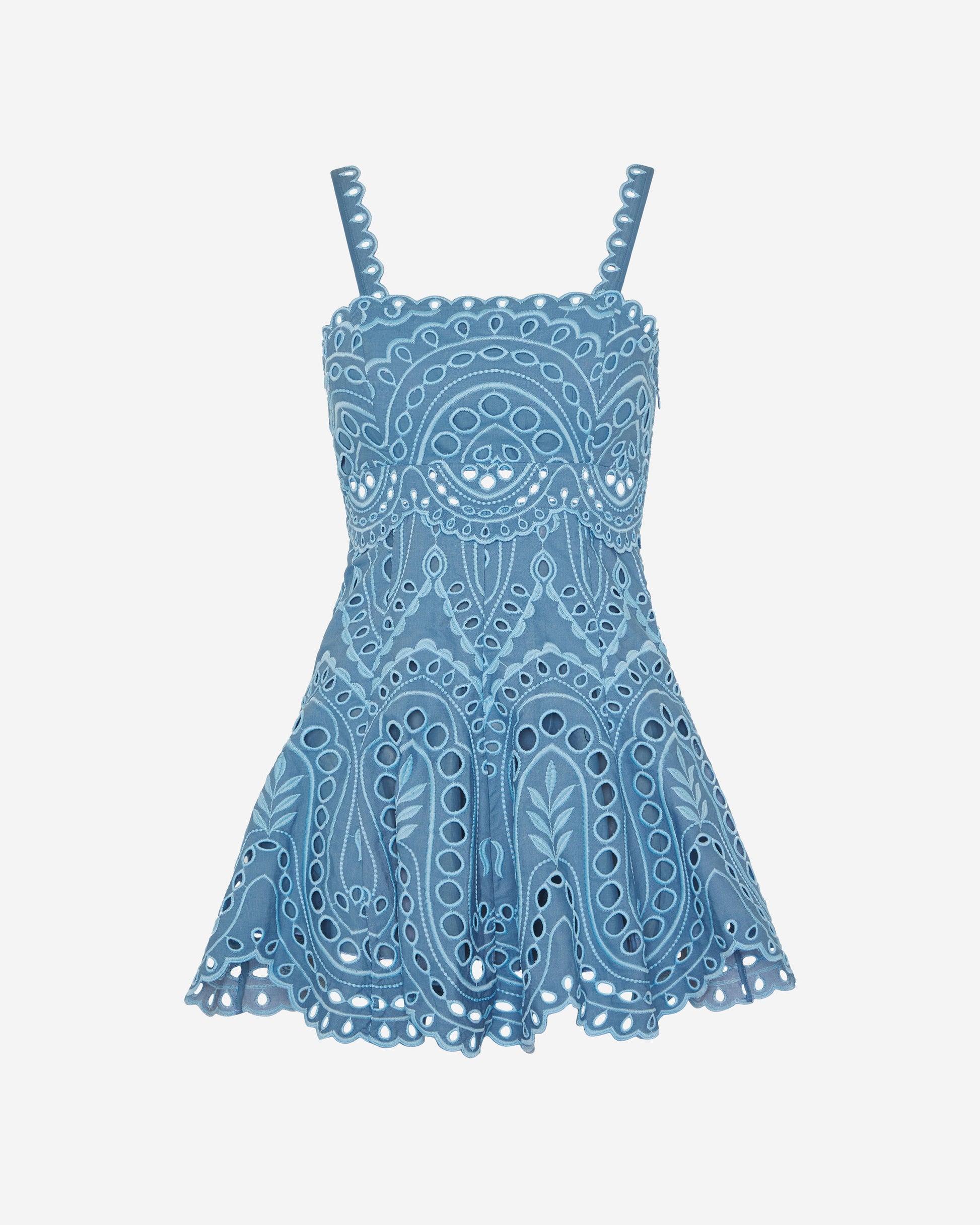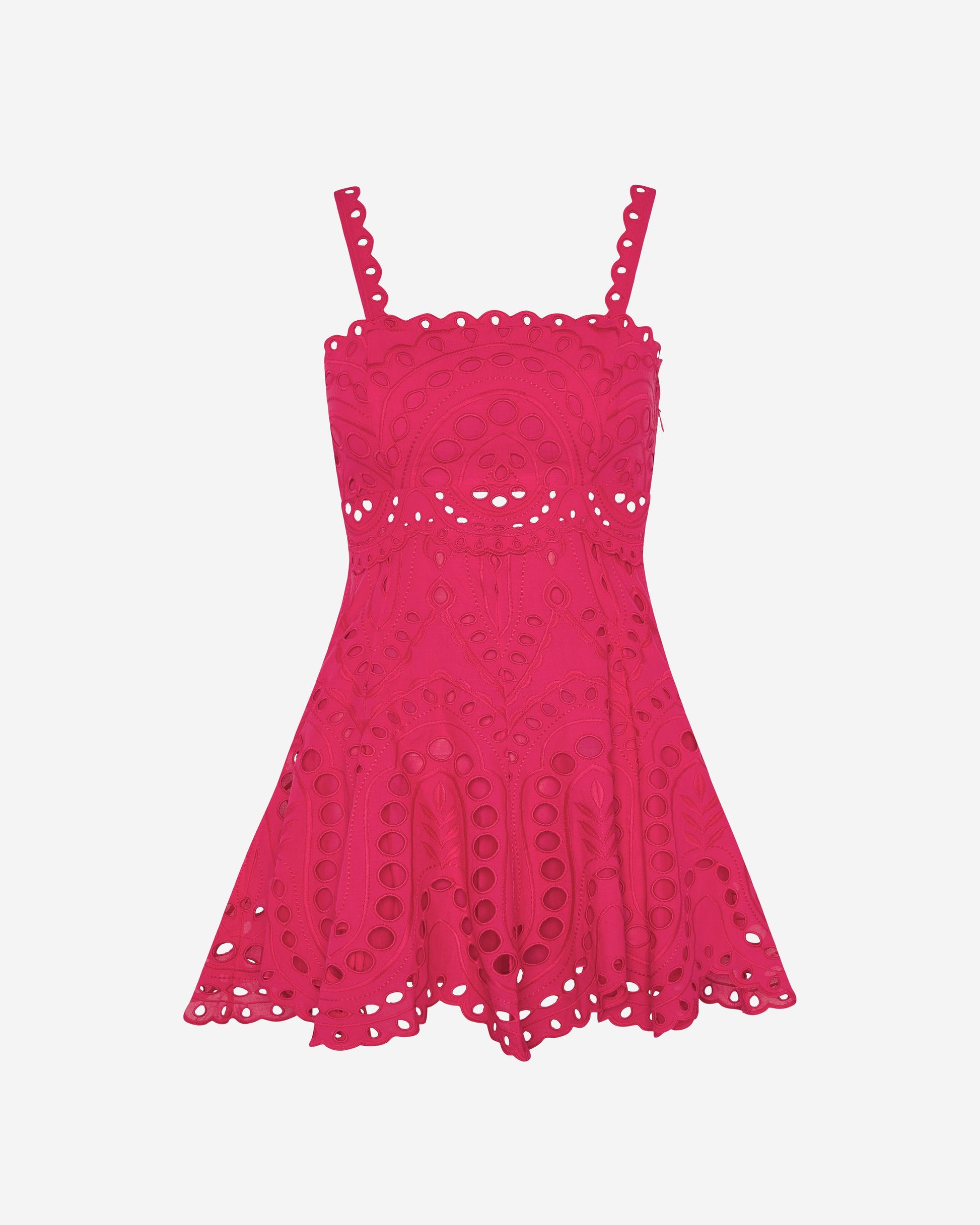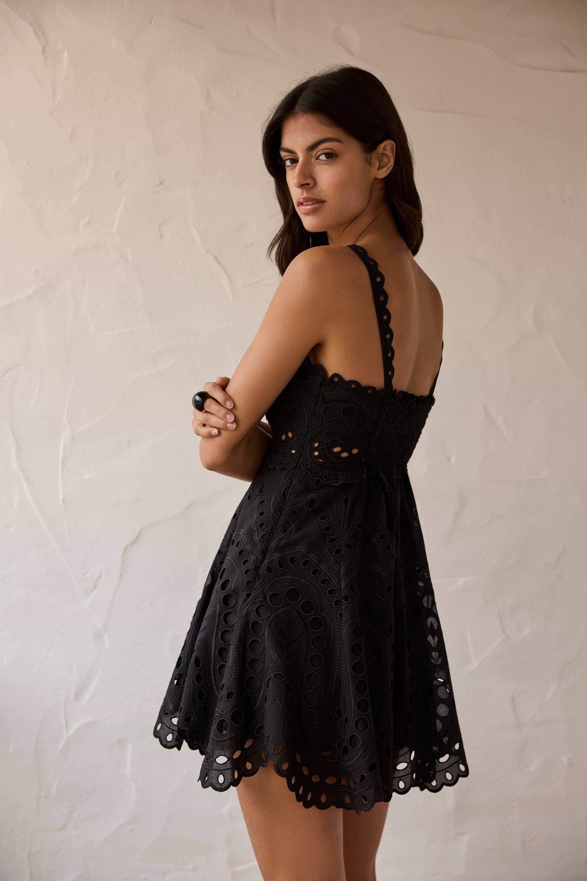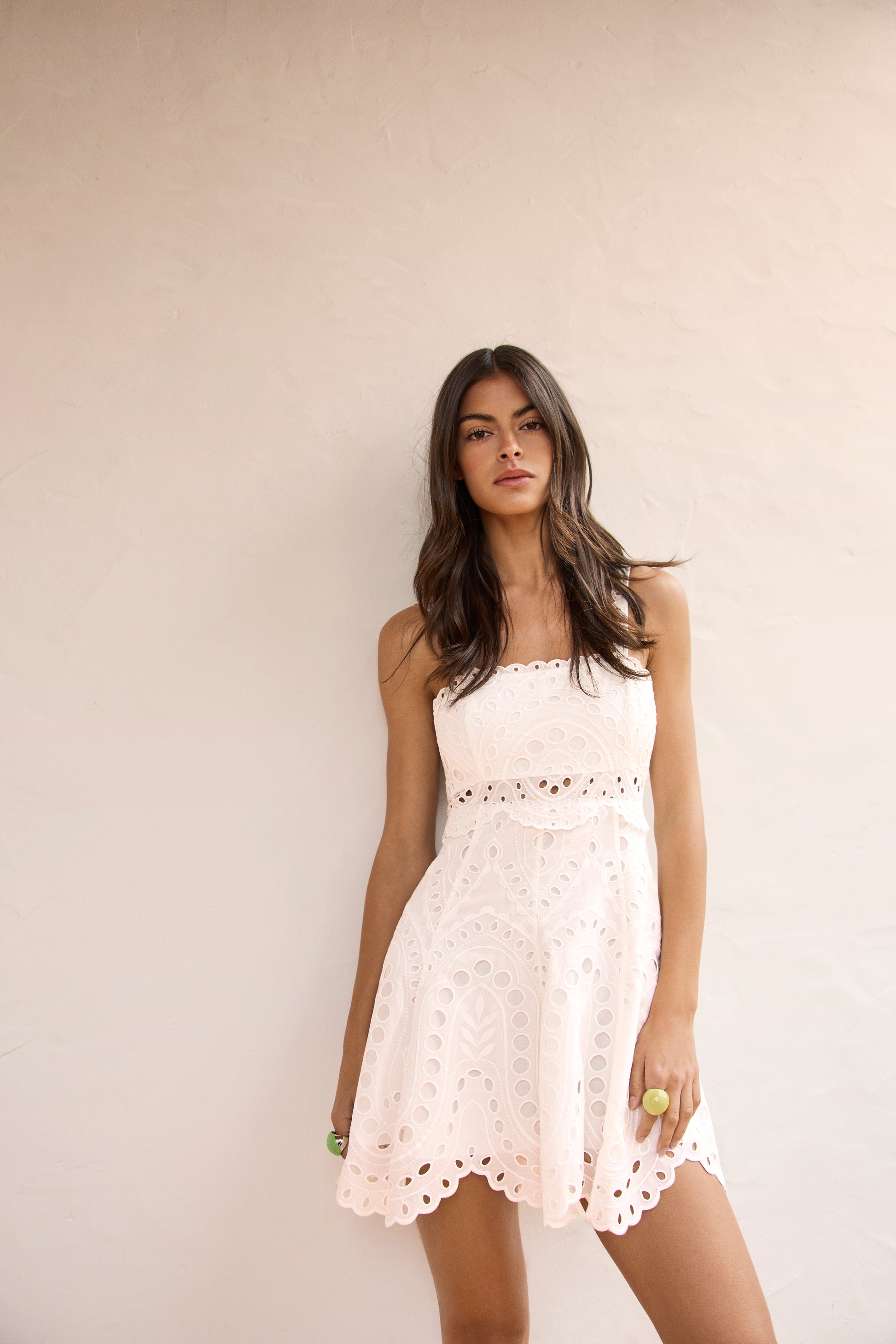 The ZEPH dress radiates sweetness and lightness with a silhouette made for summer. Its straight neckline with delicate scalloping and embroidered straps creates a clean, feminine line, while the fitted bodice gently enhances the figure.