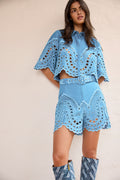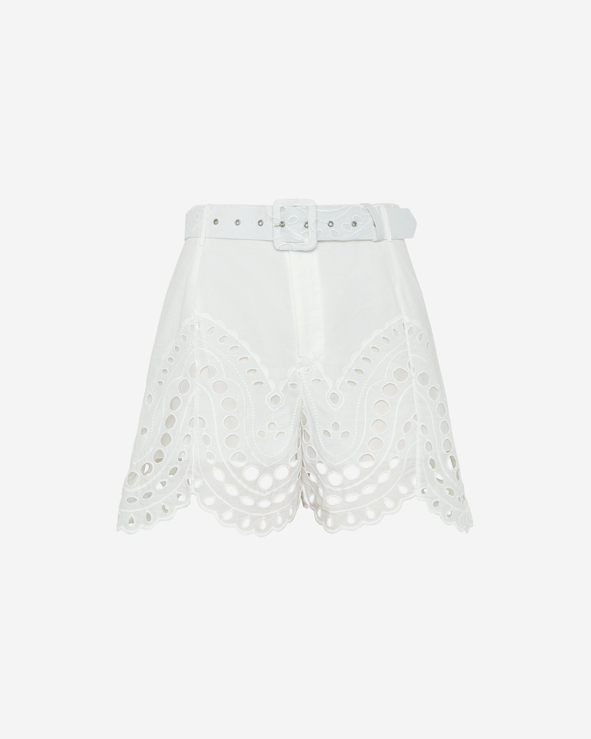The DUNE shorts strike the perfect balance between structure and lightness with natural elegance. Crafted from embroidered cotton, they feature a high-waisted fit that flatters the figure and a subtly flared silhouette for ease and movement.