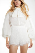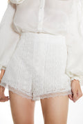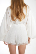 Our HAZIE shorts, crafted with exquisite guipure and tailored for a flawless fit, are the perfect choice for any occasion. The A-line silhouette and vertical panels create a lengthening effect, flattering the figure.