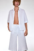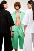 The IONO shorts in cotton voile are the trendiest piece of the season. Its bermuda cut is perfect for playing with the silhouettes of your summer looks, while its 3D embroidered texture elevates any combination. This completely unisex piece adapts to any body thanks to its elastic waist and comfortable leg. Create a total look with our textured shirts or opt to enhance your feminine line with our corsets.