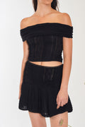 Our ETAIN mini skirt is the 'girly' piece of the collection. With it, you will feel beautiful, and your legs will look infinite. Its combination of mesh fabrics with cotton creates an intricate play of panels between the tight yoke that flatters your curves and the ruffle that creates a sinuous movement.
